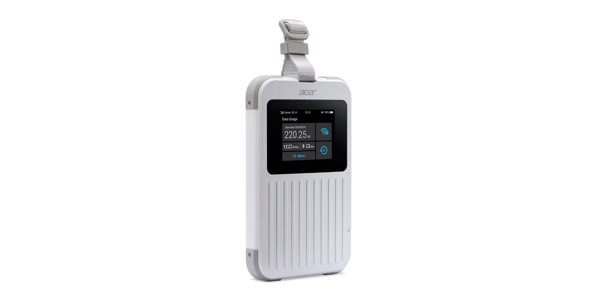 Acer Connect Enduro M6E s 20GB mobilní WiFi hotspot router s duální konektivitou 5G<E * 2,4” dotykový displej * data 20 GB * až 32 zařízení * rychlost AX3000 * NFC * IP68 a odolnost proti pádu až do 1,22 m * MIL-STD 810H