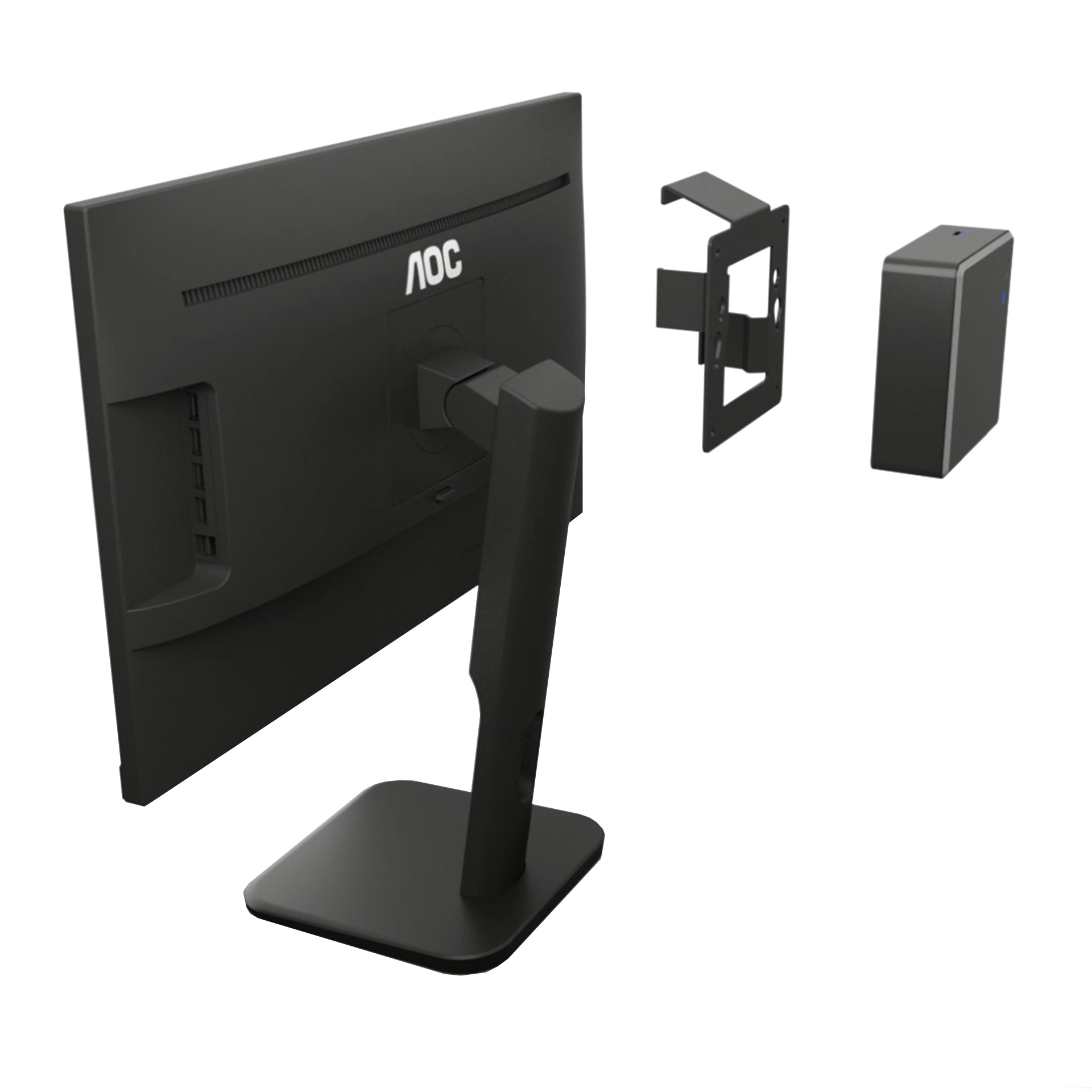 Tento držák navržený pro monitory AOC představuje dokonalé řešení pro upevnění mini PC k výškově nastavitelné základně vašeho monitoru. Držák VESA šetří místo na stole připevněním počítače na zadní stojan monitoru AOC.