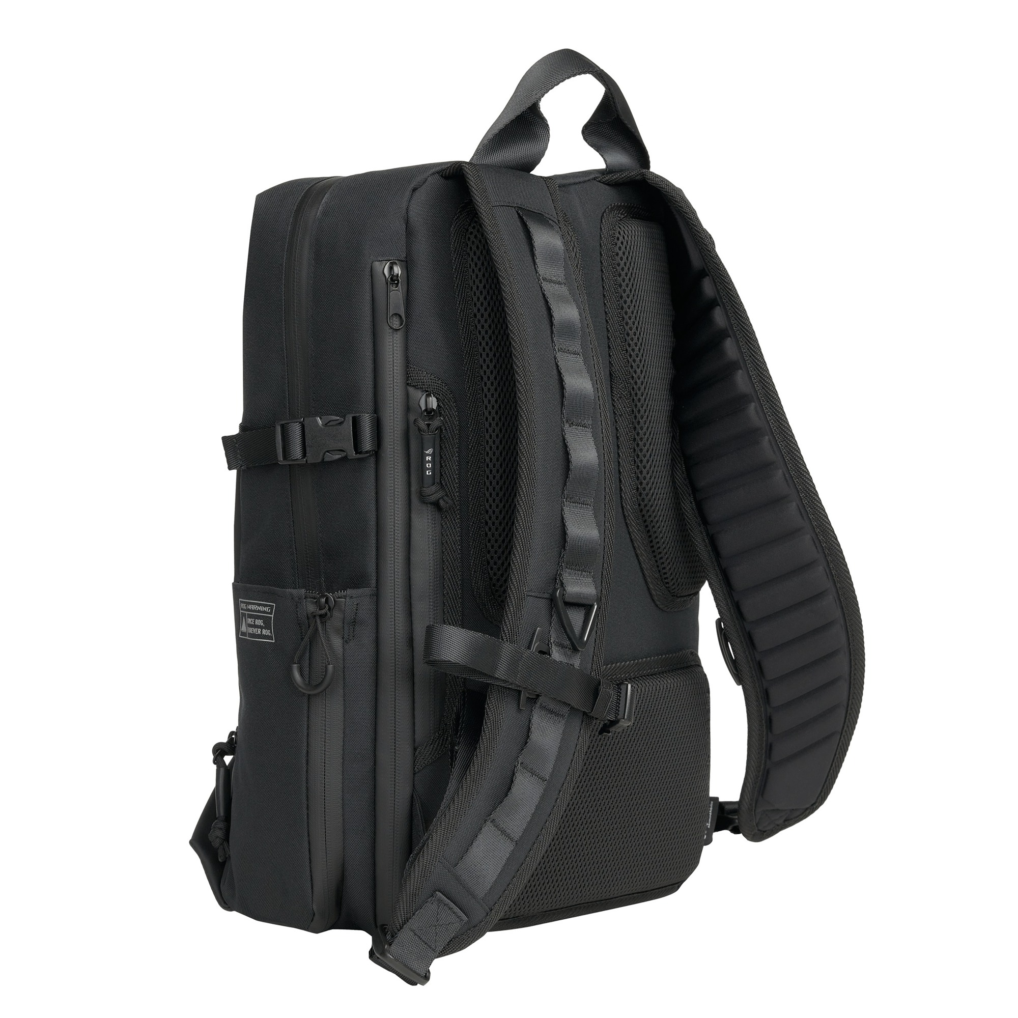 Skryté kapsy pomáhají uchovávat cennosti v bezpečí během cestování nebo dojíždění. Boční stabilizační přezka určená pro lahve a deštníky se také promění v diskrétní zámek proti krádeži.