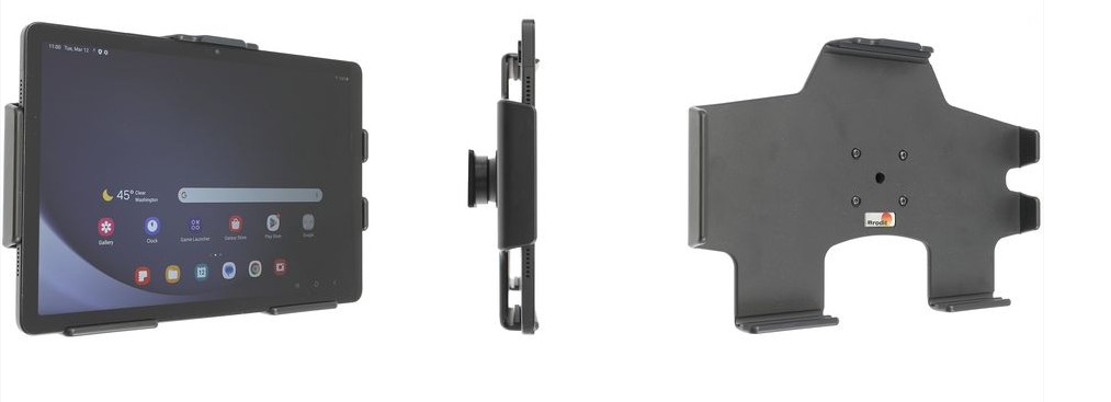 Držák bez nabíjení pro tablety Samsung Galaxy Tab A9+ 10.9" SM-X210 a A11+ SM-X310/SM-X315 LTE/ SM-X236 5G bez pouzdra pouzdru s kloubem pro možnost náklonu o 17° pro zajištění optimálního pozorovacího úhlu. Pro montáž držáku jsou předvrtané otvory AMPS. Držák je velmi pevný, tablet se v něm neklepe a nevibruje. Držák má kloub, díky kterému může tablet kdykoliv jednoduše natočit na šířku nebo na výšku nebo naklopit. Držák se upevňuje na Brodit ProClip či na montážní podstavce a ramena Brodit. Přednosti: -Tablet se v držáku neklepe a nevibruje -Drží v něm bezpečně, ani při nehodě se nemůže uvolnit a zranit posádku -Držák neblokuje žádná tlačítka ani konektory -Držák má kloub, tablet můžete kdykoliv natočit na výšku nebo na šířku nebo naklopit až o 17°. -Montáž na ProClip nebo podstavec je jednoduchá a zvládne ji i naprostý laik za pár minut Rozměry: - 266 x 173 x 45 mm Hmotnost: - 214 g Materiál: - Vysoce kvalitní ABS plast Upozornění: -Jedná se o dvojdílné řešení. K tomuto držáku budete ještě potřebovat ProClip do palubní desky pro váš konkrétní model vozu. Vhodný ProClip si vyberte v konfigurátoru Brodit. Držák na ProClip připevníte čtyřmi samořeznými šrouby, které jsou součástí balení držáku. Možnosti instalace držáku Brodit do auta, dodávky, autobusu, nákladního auta atd.: Instalace na klip Brodit ProClip: Klipy Brodit ProClip jsou chytře navržené klipy z pevné umělé hmoty, které jsou konstruovány tak, aby spolehlivě a velmi pevně držely v konstrukční spáře mezi plasty palubní desky. Klip je vždy navržen pro konkrétní model vozu tak, aby šel zasunout (zacvaknout) jednoduše, bez poškození palubky a na bezpečné místo a současně tak, aby nebránil řidiči ve výhledu přes přední sklo. Na klip pak jednoduše přišroubujete držák Brodit. Vše co k tomu budete potřebovat kromě šroubováku je již součástí balení držáku. Vhodný ProClip si vyberte v konfigurátoru Brodit. Instalace na montážní podstavce a ramena Brodit: Montážní podstavce a ramena umožňují velmi pevné připevnění držáku prakticky kdekoliv. Montážní podstavce a ramena najdete zde. Tipy: - Potřebujete střídat dva držáky na jednom ProClipu? Nebo chcete držák jednoduše sundávat? Pro oba případy se výborně hodí MultiMoveClip. - Potřebujete na jeden ProClip umístit dva držáky najednou? Nebo chce mít držák o kousek jinde než umožňuje umístění ProClipu? Vyberte si vhodnou rozšiřující montážní destičku. Pak na jeden ProClip budete moct připevnit vedle držáku na mobilní telefon ještě držák na nápoje nebo na navigaci nebo radiostanici nebo platební terminál atd.