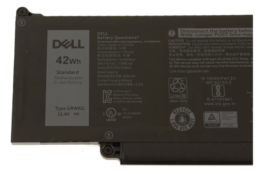 Stále cestujete? Už si nemusíte dělat starosti s omezenou výdrží baterií! Svůj notebook můžete napájet touto 3-článkovou lithium-iontovou baterií Dell™. Díky kapacitě až 42Wh vám baterie umožní bezproblémovou práci na služebních cestách i na dovolené. Tato baterie vám poskytne nepřetržité a spolehlivé napájení, které potřebujete pro co nejlepší využívání notebooku. Lithium-iontové baterie vydrží déle než běžné baterie a nevyžadují tak častou výměnu. Tento produkt byl testován a ověřen v laboratořích Dell. Pokud jej použijete v notebooku Dell, vztahuje se na něj technická podpora společnosti Dell.