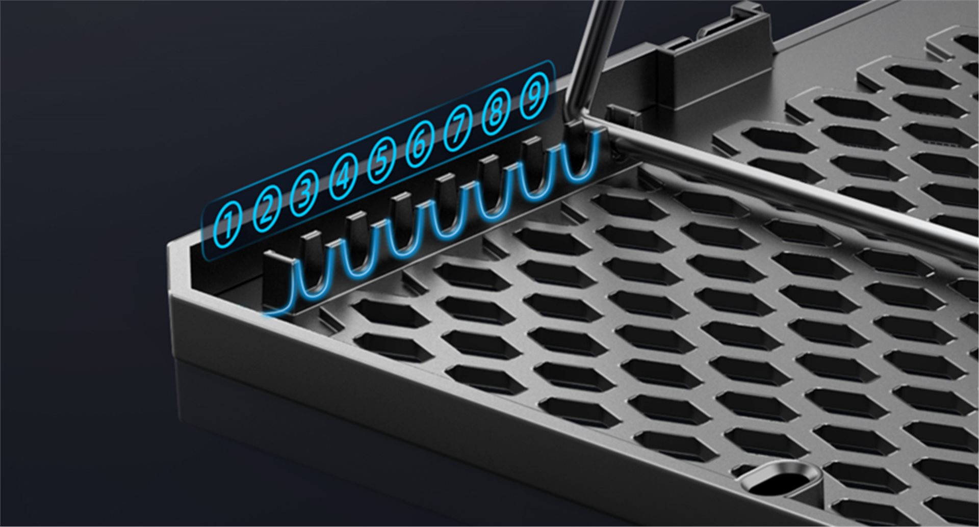 Zvolte si sklon dle vlastních potřeb Chladicí podložka EVOLVEO Ania 9 RGB disponuje možností polohování. Je zde celkem 9 různých poloh, a to až do výše 210 mm. Každý uživatel si tak najde optimální polohu.