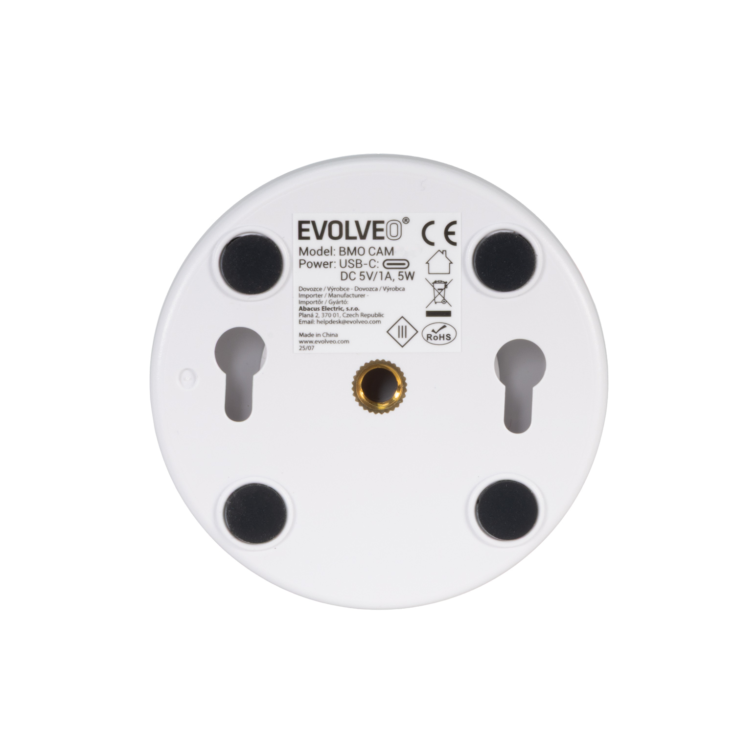 Kamera • Obrazový senzor: GC0308 • Rozlišení senzoru: 0,3 MP (640 × 480 px) • Ohnisková vzdálenost: 3,7 mm • Úhel záběru: 50° • Noční vidění: 8 IR LED (940 nm), dosah až 5 m, bez viditelného červeného světla • Mikrofon: citlivost –30 dB ±2 dB • Reproduktor: 8 ? / 1 W • Materiál: ABS • Napájení: 5 V / 1 A (USB Type-C) • Flash paměť: 4 MB • RGB osvětlení: 10 barevných LED • Rozměr: 66x66x127mm • Váha: 99g
