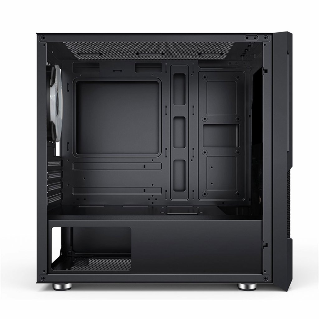 Herní mATX skříň s instalovanými RGB rainbow 120 mm ventilátoremy a bočnicí z temerovaného skla. Skříň je určená pro základní desky podporující platformu Intel i AMD. Mimo formátu mATX je kompatibilní i s formátem Mini ITX. Napájecí zdroj se umísťuje do dolní části skříně. Spodní mřížka je osazena vysouvacím prachovým filtrem. Ovládání ventilátorů je možné pomocí připojení k základní desce.