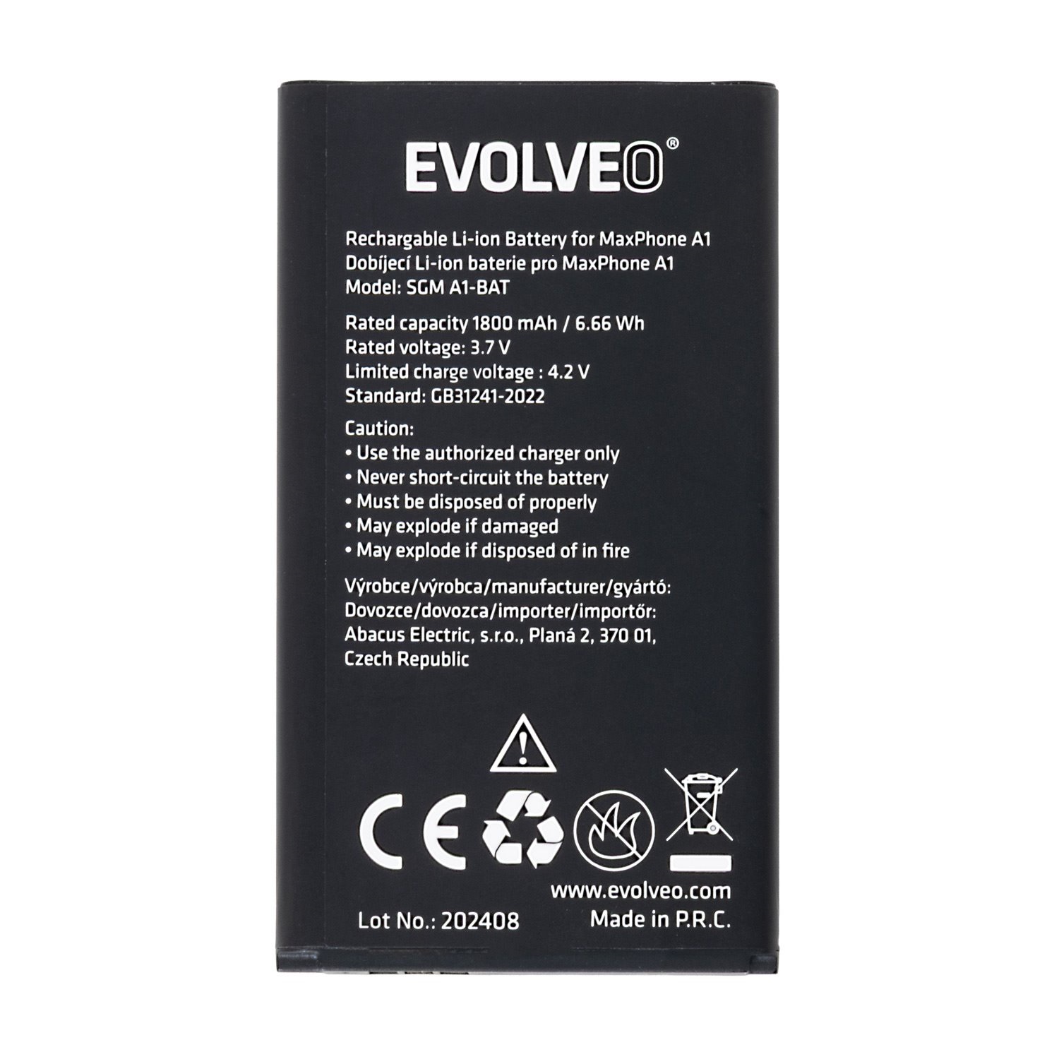 Parametry - EVOLVEO orig. baterie 1800 mAh pro MaxPhone A1, StrongPhone Q1/Z4/W4
