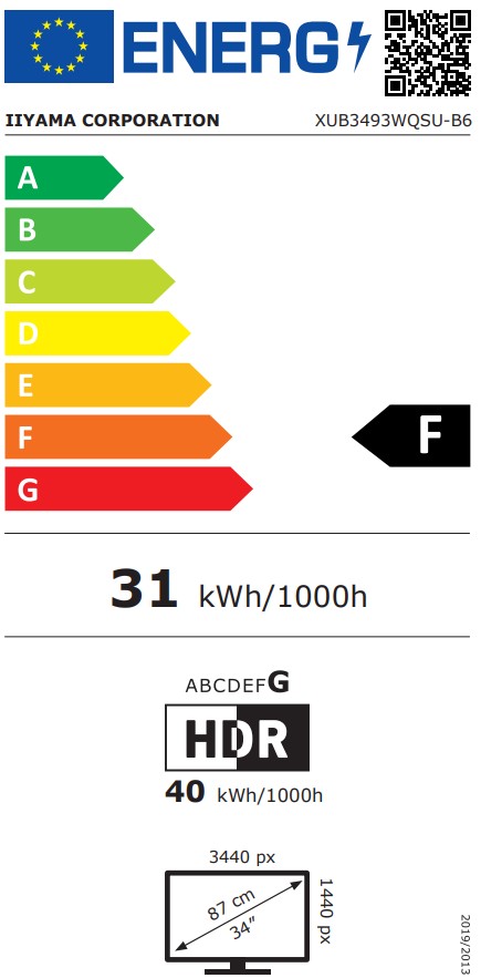 Parametry - iiyama ProLite/XUB3493WQSU-B6/34"/IPS/wQHD/120Hz/1ms/Černá/3R
