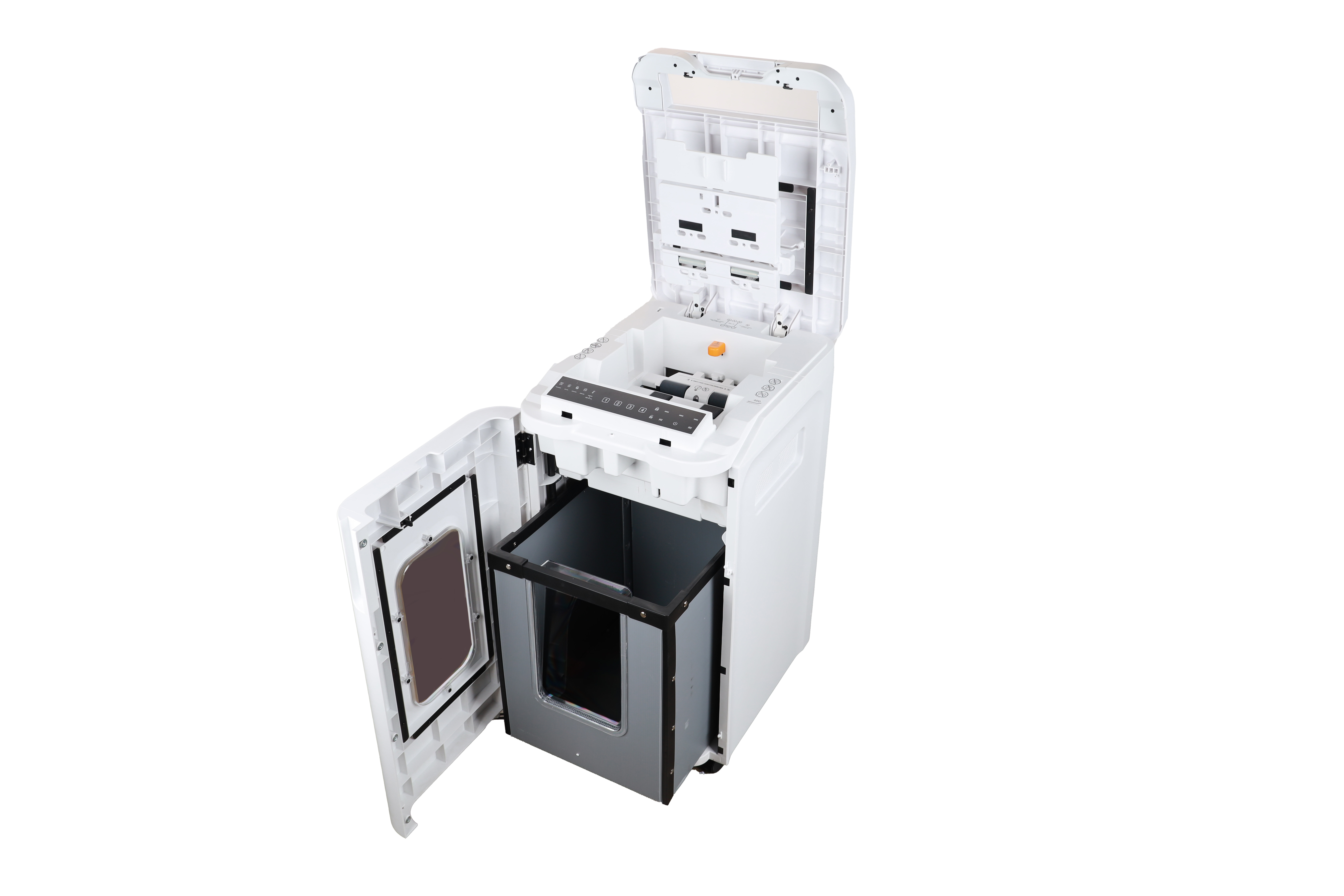 - Skartovačka s automatickým podavačem s příčným řezem 4 x 12 mm - Skartace papíru, svorek, sponek, kreditních karet a CD/DVD - Objem odpadové nádoby 55 l - Maximální kapacita skartace až 10 listů papíru 80 g/m2 - Kapacita automatického podavače až 400 listů papíru 80 g/m2 - Vstupní šíře 230 mm - Hlučnost <56 dB - Úroveň zabezpečení P-4 - Rychlost řezu 0,18 m/s - Až 240 min nepřetržité skartace - Automatický start / stop a automatický zpětný chod - Indikátor přehřátí - Automatické vypnutí při nečinnosti po 5 minutách - PIN kód pro otevření a zamčení automatického podavače - Stabilní základ na čtyřech kolečkách - Rozměr 760 x 500 x 400 mm