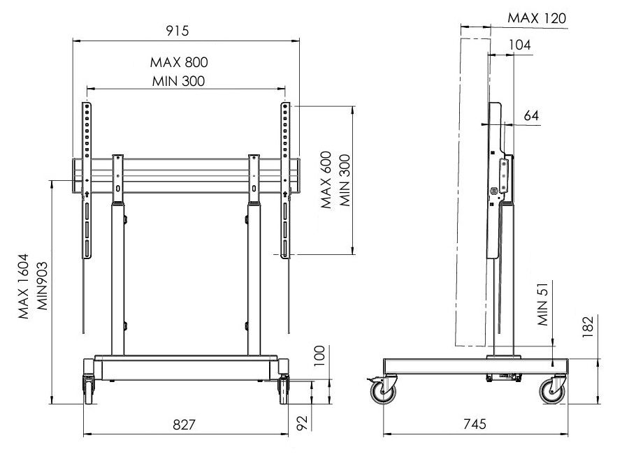 Parametry - Vogel's RISE 3205 pojízdný podlahový lift 86", dvojitý, 903-1604 mm