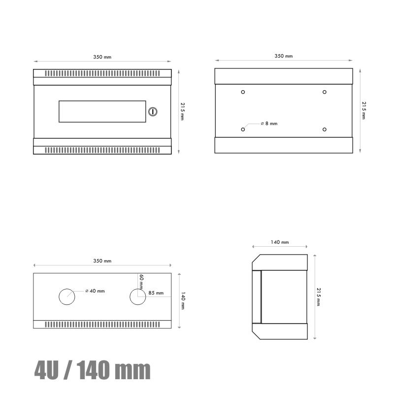 Upozornění: Pokud zboží převezmete od přepravce bez výhrady, není možná jakákoliv pozdější reklamace z důvodu fyzického poškození zboží. 10" nástěnný rozvaděč DATACOM - výška 4U (215 mm) - hloubka 140 mm (vnější) (vnitřní hloubka 10cm) - barva černá - plechové dveře s plexisklo výplní - snadná výměna levé/pravé otevírání Rozvaděč obsahuje: - přední vertikální lišty - dveřní zámek + 2 klíče Logistické parametry: - rozměry: 360 x 150 x 230 mm - n.w.: 3,6 kg - g.w.: 3,8 kg