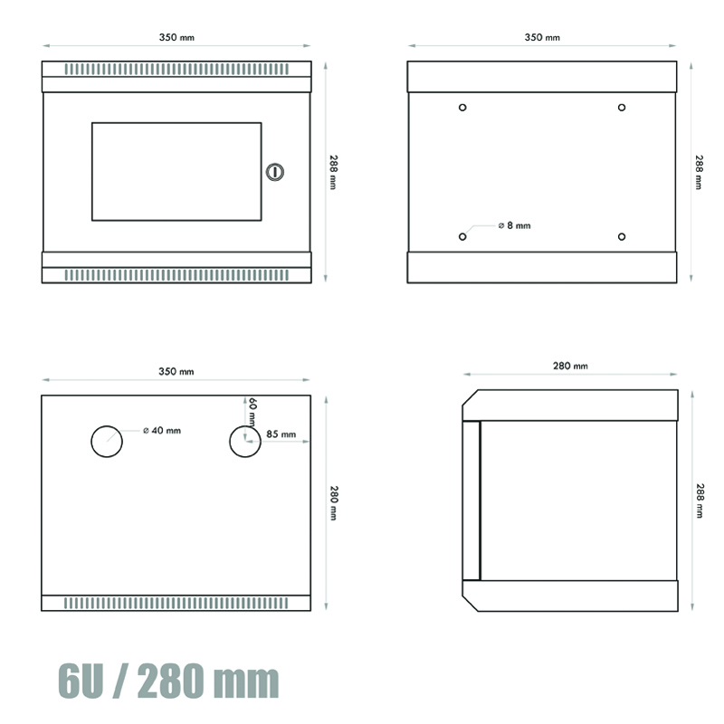 Parametry - 10" rack jednodílný 6U/280 DATACOM šedý Skl.dv.