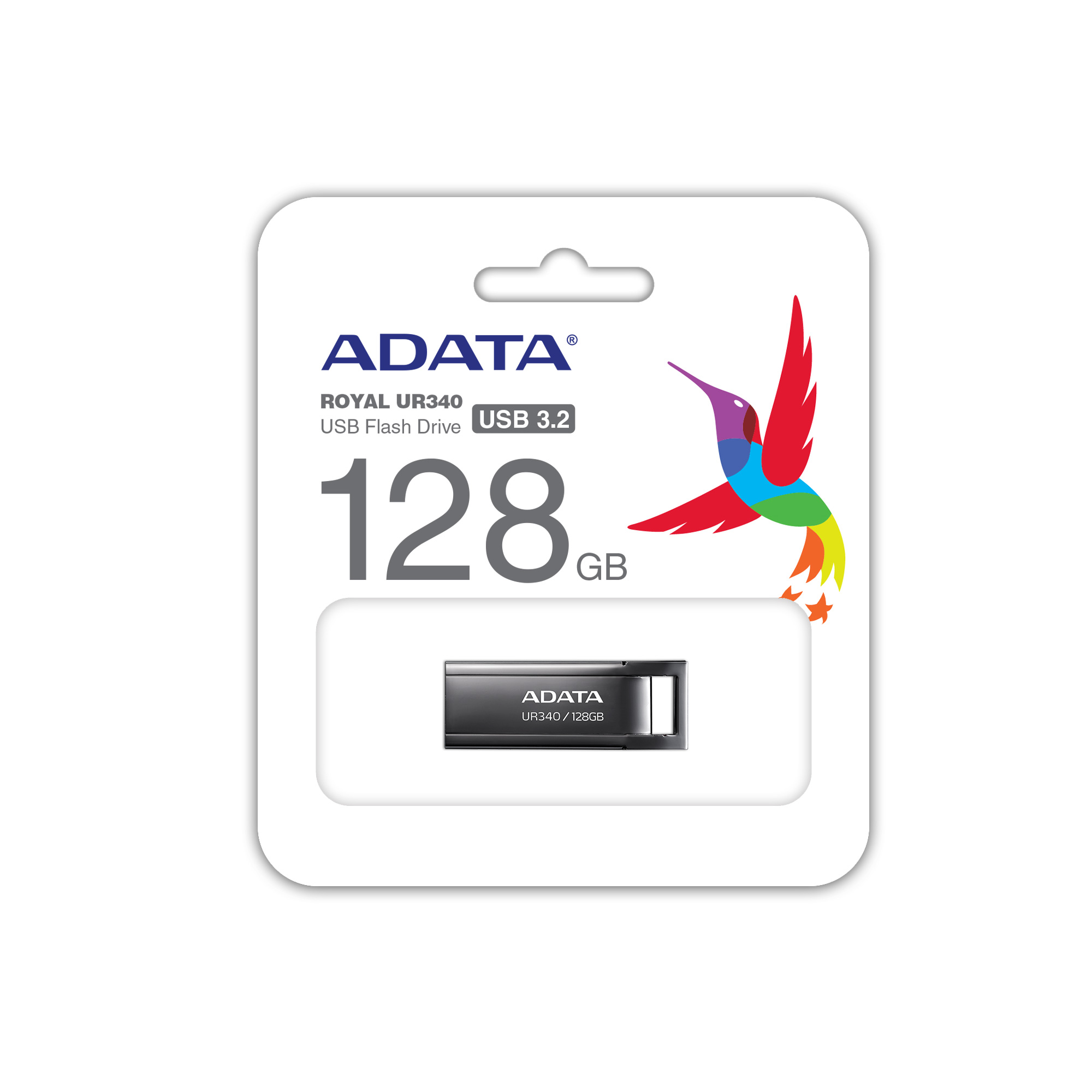 ADATA USB Flash UR340 Rozhraní: USB 3.2 Gen1 s rychlostí 5Gb/s Kapacita: 128 GB Rychlost čtení: 100 Mb/s Velikost: 34,8 x 12,25 x 4,6mm Barva: černá/kov