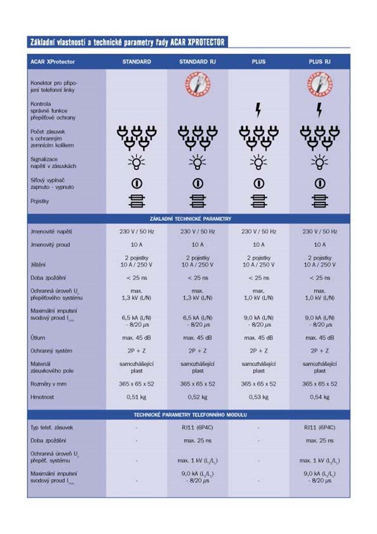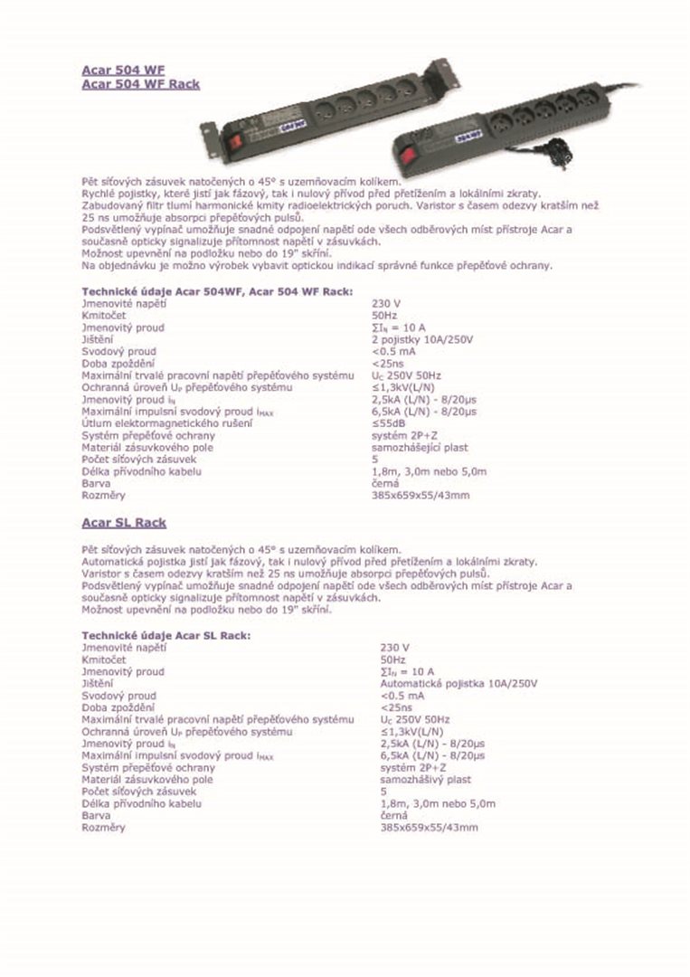 Parametry - 19" napáj.pan.Acar 504WF 5x230V-5m black+přep.ochr