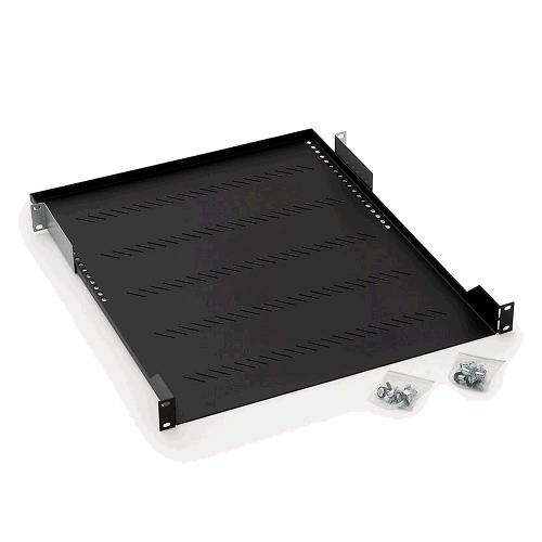 Polička Triton s perforací 1U/850mm specifikace: Barva: černá Velikost: 19", hloubka 850 mm Nosnost: 40 kg