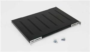 19' polička perforovaná 1U/550mm, max.nosnost 150kg,integrované podpěry, Černá barva