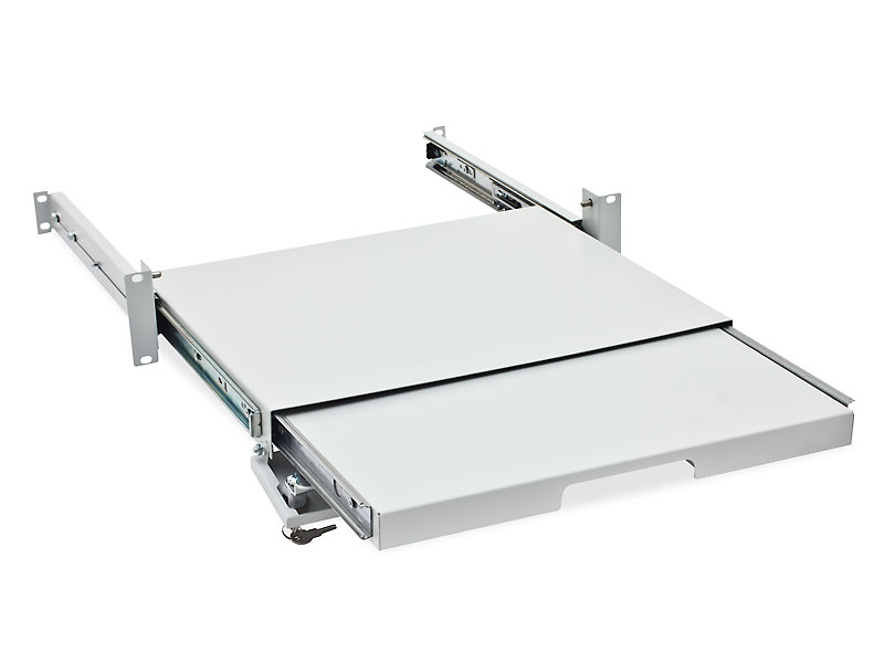 Triton, RAB-UP-X29-A1 Výsuvná uzamykatelná 19´´ police 2U pro klávesnici a myš, uzamykatelná, hloubka zasunuté police je 371,5 mm Příbal: montážní materiálbarva: černáilustrační obrázek
