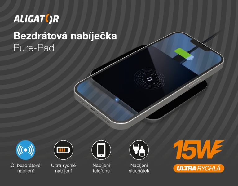 ALIGATOR bezdrátová nabíječka Aligator Pure-Pad 15W, černá