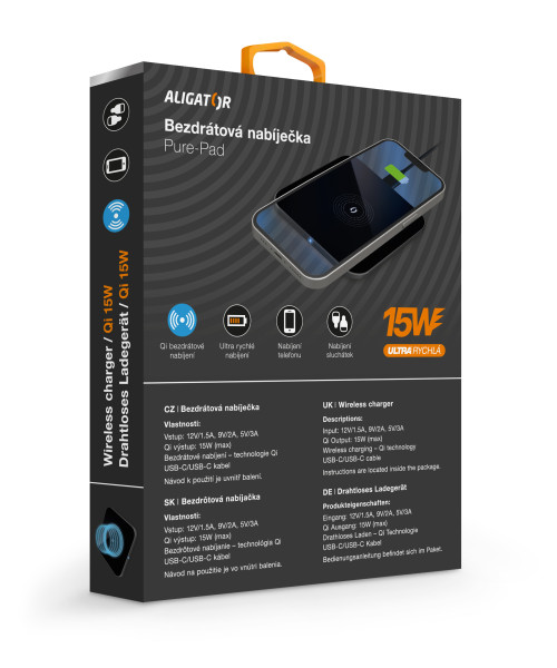 Parametry - ALIGATOR bezdrátová nabíječka Aligator Pure-Pad 15W, černá