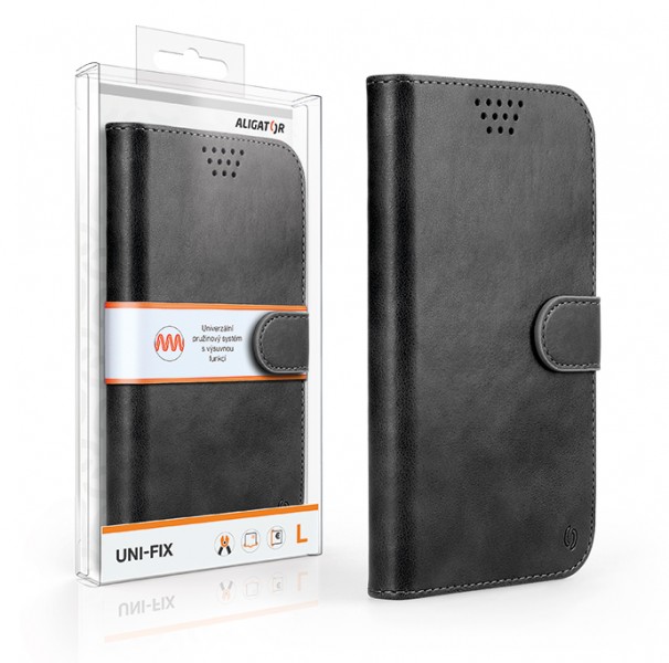 Aligator Pouzdro UNI-FIX, vel.XXL(170*83) černá je univerzální a elegantní pouzdro pro mobilní telefony. S přítlačnými posuvnými čelistmi pro uchycení telefonu a tenkým designem je ideálním doplňkem pro ochranu vašeho zařízení. S přihrádkami na karty a bankovky je praktické a stylové řešení pro vaše potřeby. Vyrobena z odolné PU kůže.Displej ovládatelny.