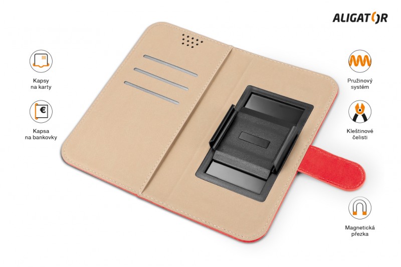UNI-FIX Nová řada univerzálních pouzder s mechanizmem přítlačných čelistí značky ALIGATOR. Dokonale propracovaný design, tenké provedení, přihrádky na kartu nebo vizitky, podélná kapsa na bankovky, zavírání pomocí magnetické přezky, snadné uchycení mobilního telefonu pomocí výsuvných čelistí z kvalitního plastu, které jsou určené pro opakované umístění telefonu. Jednou z klíčových vlastností pouzdra je optimálně široký (hluboký) hřbet pouzdra, který je zároveň velmi tenký a jemně zpracovaný pro pohodlnou manipulaci. Rozměry samotného pouzdra jsou přizpůsobeny telefonům s novým poměrem stran displeje 18:9, ale zároveň jsou stále kompatibilní i s mobilními telefony s klasickým poměrem stran. Přední odklápěcí strana je vybavena přezkou se skrytým magnetickým zavíráním. Tato přezka je navržena pro maximální ochranu Vašeho mobilního telefonu. Polstrovaná podšívka, příjemná na omak, přispívá k ochraně displeje Vašeho mobilního telefonu, stejně jako prémiové přítlačné čelisti, které mají výsuvnou funkci a zároveň skvěle zafixují Váš mobilní telefon. Na vnitřní levé straně pouzdra najdete důmyslně skryté tři přihrádky na kreditní karty nebo vizitky a jednu podélnou kapsu pro bankovky. Pouzdro UNI-FIX je vyrobené z velmi kvalitní a odolné PU kůže, dostupné ve 4 barvách a 3 velikostech. Je pohodlným a reprezentativním doplňkem do kapsy i do kabelky. Pro maximální ochranu Vašeho mobilního telefonu doporučujeme používat toto pouzdro v kombinaci s řadou kvalitních univerzálních tvrzených skel ALIGATOR GLASS. * Univerzální pouzdro * Zavírání pomocí magnetické přezky * Přítlačné posuvné čelisti pro uchycení mobilního telefonu * Otvory pro reproduktor k pohodlnému vyřizování hovorů * Přihrádky na karty nebo vizitky * Kapsa na bankovky * Tenké provedení * Kvalitní zpracování * Elegantní design * Snadné uchycení a vyjmutí mobilního telefonu * Použití fotoaparátu bez nutnosti vyjmout telefon z pouzdra s pomocí výsuvného systému Dostupné univerzální velikosti: * L 150*72*20mm * XL 160*82*20mm * XXL 170*83*20mm Široká škála barev: * Černá * Hnědá * Červená