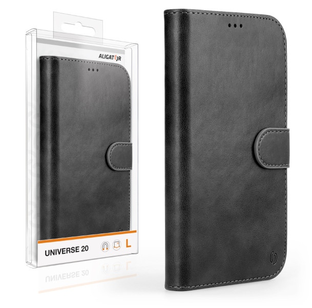 Nová řada univerzálních pouzder značky ALIGATOR. Dokonale propracovaný design, tenké provedení, přihrádka na kartu nebo vizitky, podélná kapsa na bankovky, zavírání pomocí magnetické přezky, snadné uchycení mobilního telefonu pomocí prémiové lepicí nano podložky, která je určena pro opakované umístění telefonu. Zadní výřez pro fotoaparát a čtečku otisku prstu je navržen tak, aby byl kompatibilní s většinou mobilních telefonů. Jednou z klíčových vlastností pouzdra je optimálně široký (hluboký) hřbet pouzdra, který je zároveň velmi tenký a jemně zpracovaný pro pohodlí při manipulaci. Rozměry samotného pouzdra jsou přizpůsobeny telefonům s novým poměrem stran displeje 18:9, ale zároveň jsou stále kompatibilní i s klasickými mobilními telefony. Přední odklápěcí strana je vybavena přezkou se skrytým magnetickým zavíráním. Tato přezka je navržena pro maximální ochranu Vašeho mobilního telefonu. Polstrovaná podšívka, příjemná na omak, přispívá k ochraně displeje Vašeho mobilního telefonu, stejně jako prémiová nano podložka, která zároveň skvěle fixuje mobilní telefon a slouží k opakovanému použití. Na vnitřní levé straně pouzdra najdete důmyslně skryté dvě přihrádky na kreditní kartu, nebo vizitky a jednu podélnou kapsu pro bankovky. Pouzdro UNIVERSE 20 je vyrobené z velmi kvalitní a odolné PU kůže, dostupné v 5 barvách a 3 velikostech. Je pohodlným a reprezentativním doplňkem do kapsy i do kabelky. Pro maximální ochranu Vašeho mobilního telefonu doporučujeme používat toto pouzdro v kombinaci s řadou kvalitních univerzálních tvrzených skel ALIGATOR GLASS. *Univerzální pouzdro *Zavírání pomocí magnetické přezky *Přihrádka na kartu nebo vizitky *Kapsa na bankovky *Tenké provedení *Kvalitní zpracování *Elegantní design *Snadné uchycení mobilního telefonu pomocí prémiové nano podložky *Nano podložka slouží k opakovanému umístění mobilního telefonu