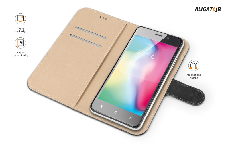 Nová řada univerzálních pouzder značky ALIGATOR. Dokonale propracovaný design, tenké provedení, přihrádka na kartu nebo vizitky, podélná kapsa na bankovky, zavírání pomocí magnetické přezky, snadné uchycení mobilního telefonu pomocí prémiové lepicí nano…