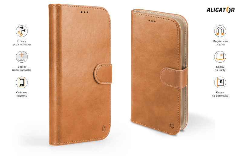 Nová řada univerzálních pouzder značky ALIGATOR. Dokonale propracovaný design, tenké provedení, přihrádka na kartu nebo vizitky, podélná kapsa na bankovky, zavírání pomocí magnetické přezky, snadné uchycení mobilního telefonu pomocí prémiové lepicí nano…