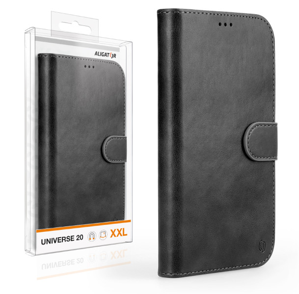 Nová řada univerzálních pouzder značky ALIGATOR. Dokonale propracovaný design, tenké provedení, přihrádka na kartu nebo vizitky, podélná kapsa na bankovky, zavírání pomocí magnetické přezky, snadné uchycení mobilního telefonu pomocí prémiové lepicí nano podložky, která je určena pro opakované umístění telefonu. Zadní výřez pro fotoaparát a čtečku otisku prstu je navržen tak, aby byl kompatibilní s většinou mobilních telefonů. Jednou z klíčových vlastností pouzdra je optimálně široký (hluboký) hřbet pouzdra, který je zároveň velmi tenký a jemně zpracovaný pro pohodlí při manipulaci. Rozměry samotného pouzdra jsou přizpůsobeny telefonům s novým poměrem stran displeje 18:9, ale zároveň jsou stále kompatibilní i s klasickými mobilními telefony. Přední odklápěcí strana je vybavena přezkou se skrytým magnetickým zavíráním. Tato přezka je navržena pro maximální ochranu Vašeho mobilního telefonu. Polstrovaná podšívka, příjemná na omak, přispívá k ochraně displeje Vašeho mobilního telefonu, stejně jako prémiová nano podložka, která zároveň skvěle fixuje mobilní telefon a slouží k opakovanému použití. Na vnitřní levé straně pouzdra najdete důmyslně skryté dvě přihrádky na kreditní kartu, nebo vizitky a jednu podélnou kapsu pro bankovky. Pouzdro UNIVERSE 20 je vyrobené z velmi kvalitní a odolné PU kůže, dostupné v 5 barvách a 3 velikostech. Je pohodlným a reprezentativním doplňkem do kapsy i do kabelky. Pro maximální ochranu Vašeho mobilního telefonu doporučujeme používat toto pouzdro v kombinaci s řadou kvalitních univerzálních tvrzených skel ALIGATOR GLASS. *Univerzální pouzdro *Zavírání pomocí magnetické přezky *Přihrádka na kartu nebo vizitky *Kapsa na bankovky *Tenké provedení *Kvalitní zpracování *Elegantní design *Snadné uchycení mobilního telefonu pomocí prémiové nano podložky *Nano podložka slouží k opakovanému umístění mobilního telefonu