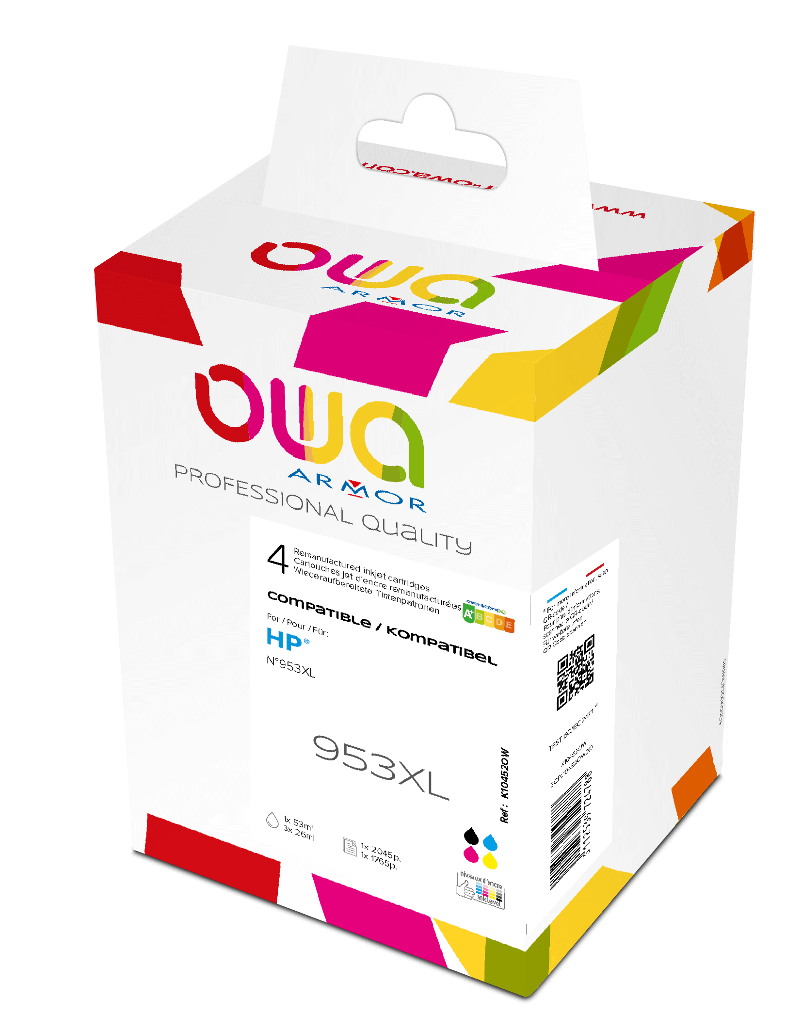 OWA Armor ink-jet pro HP PACK 4 HP953XL BCMY,L0S70AE/F6U16AE/F6U17AE/F6U18AE,53ml/3x26ml/ 2045/3x1765 str.,černá/black+1C+1M+1Y