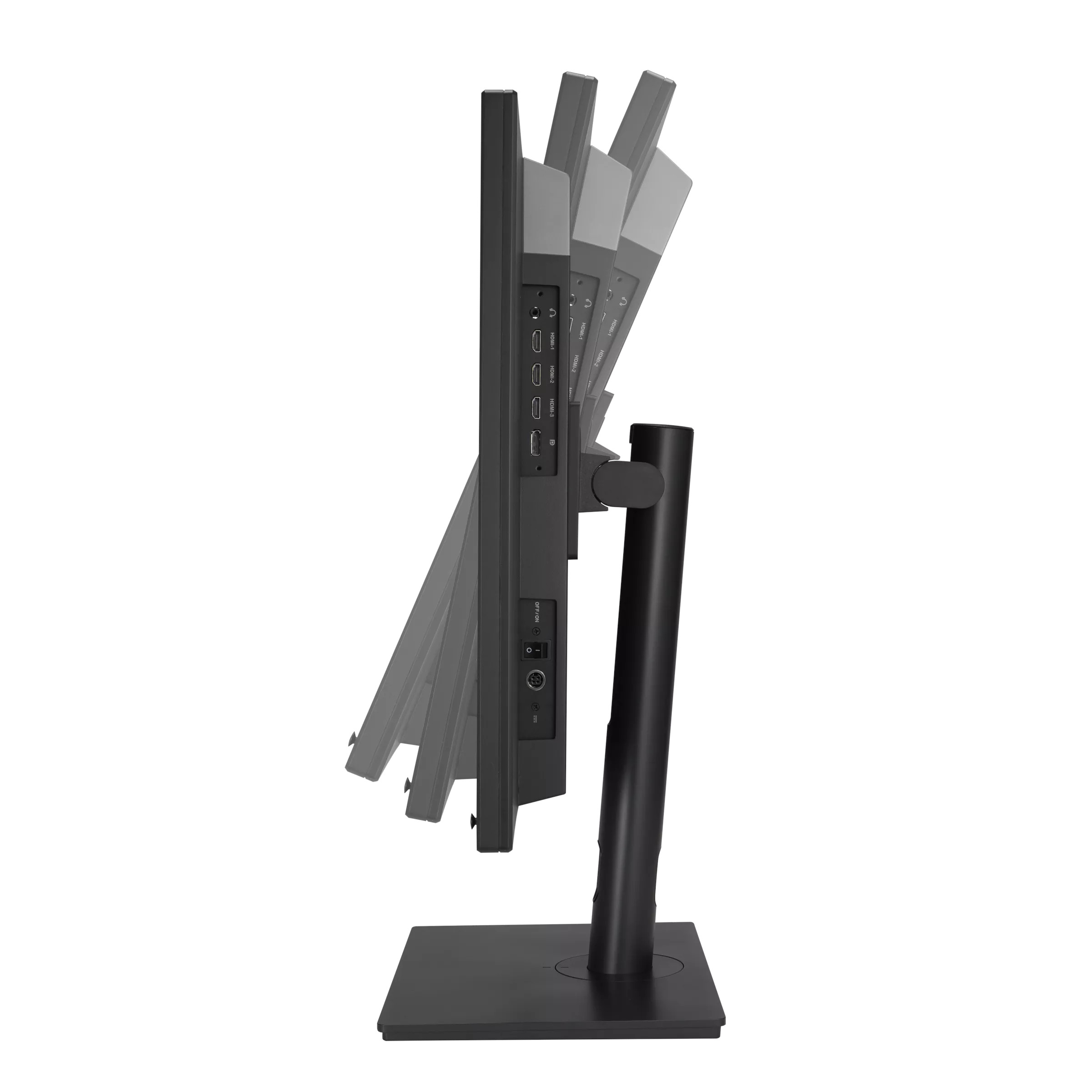 Přiložený ergonomický stojan nabízí nastavení sklonu, natočení, otočení a výšky. Možnost otočit obrazovku o 90° ve směru nebo proti směru hodinových ručiček do orientace na výšku se hodí při rentgenové kontrole nebo práci s dlouhými dokumenty.
