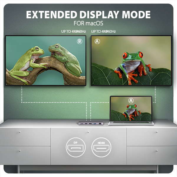 • 2 současně připojené monitory - až 4K/60Hz na obou monitorech.