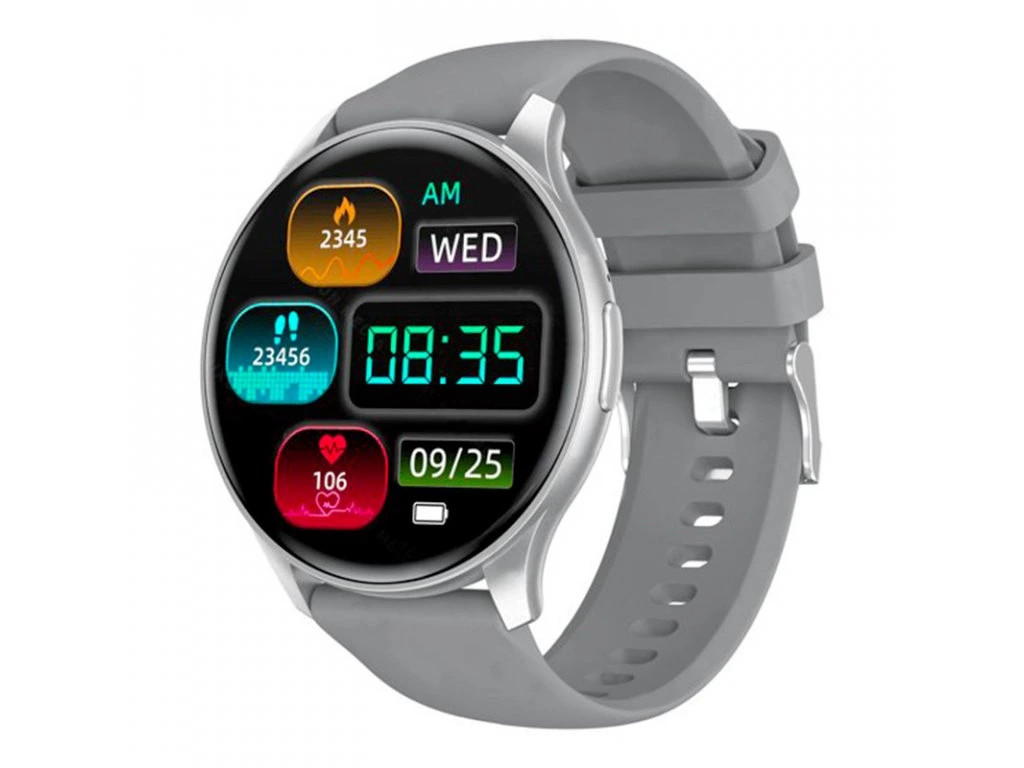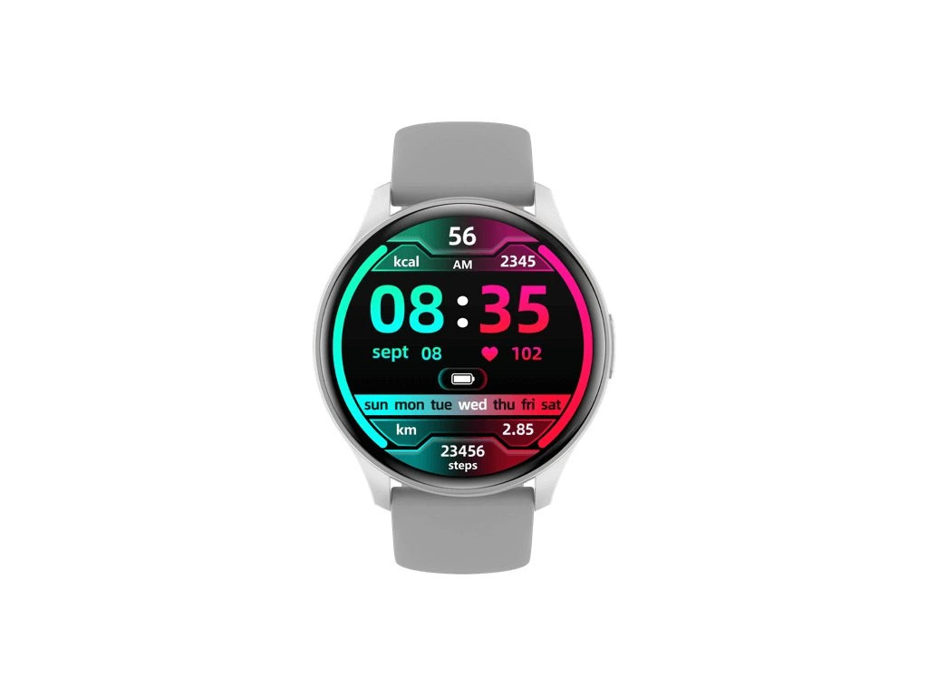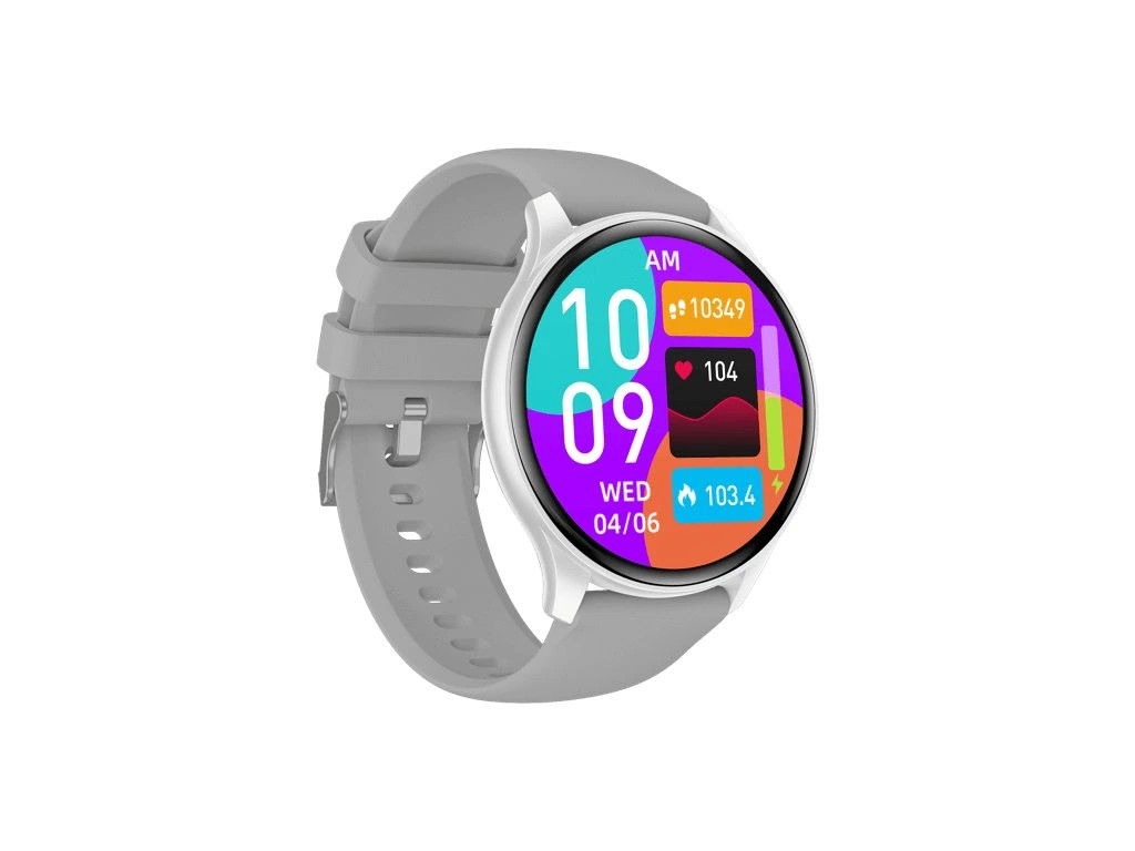 Moderní, fitness hodinky CARNEO Gear Essential druhé generace ve stříbrné barvě se světle šedým na dotek velmi příjemným silikonovým řemínkem a barevným SUPER AMOLED displejem s vysokým jasem a funkcí trvalého zobrazení času. Monitorují vaši denní aktivitu, úroveň stresu a lze je spárovat s mobilním telefonem a upozornit Vás na příchozí hovor nebo SMS. Hodinky umožňují telefonovat, aniž byste vytáhli telefon z tašky s vestavěným mikrofonem a reproduktorem až do vzdálenosti 10 m od telefonu.