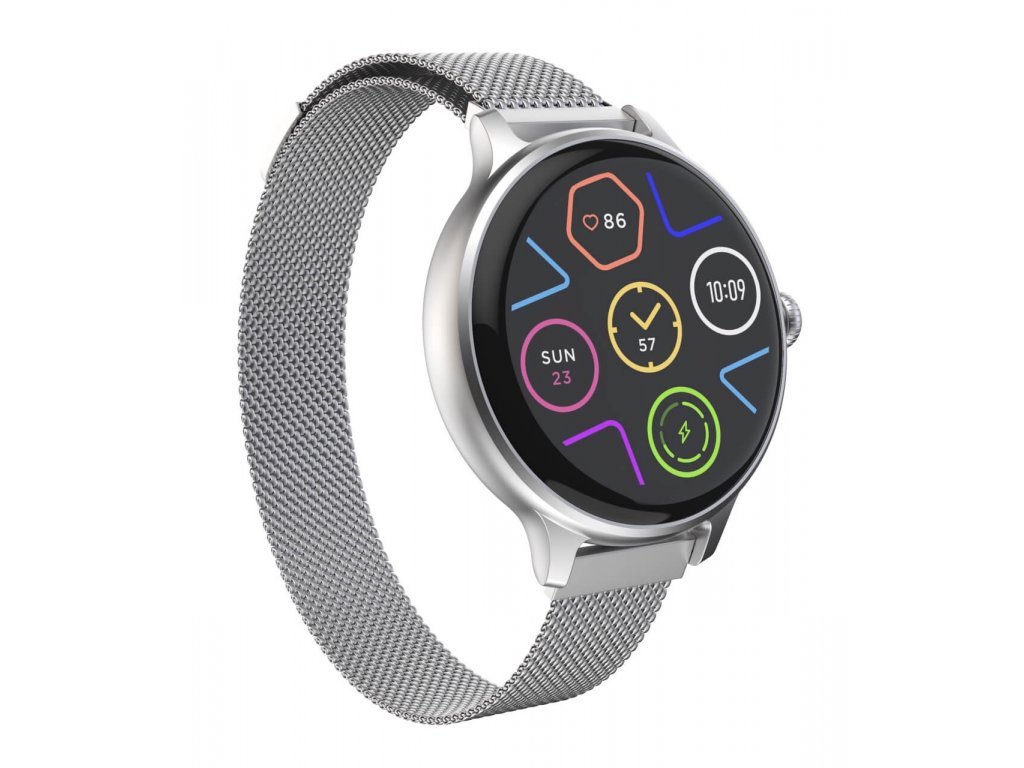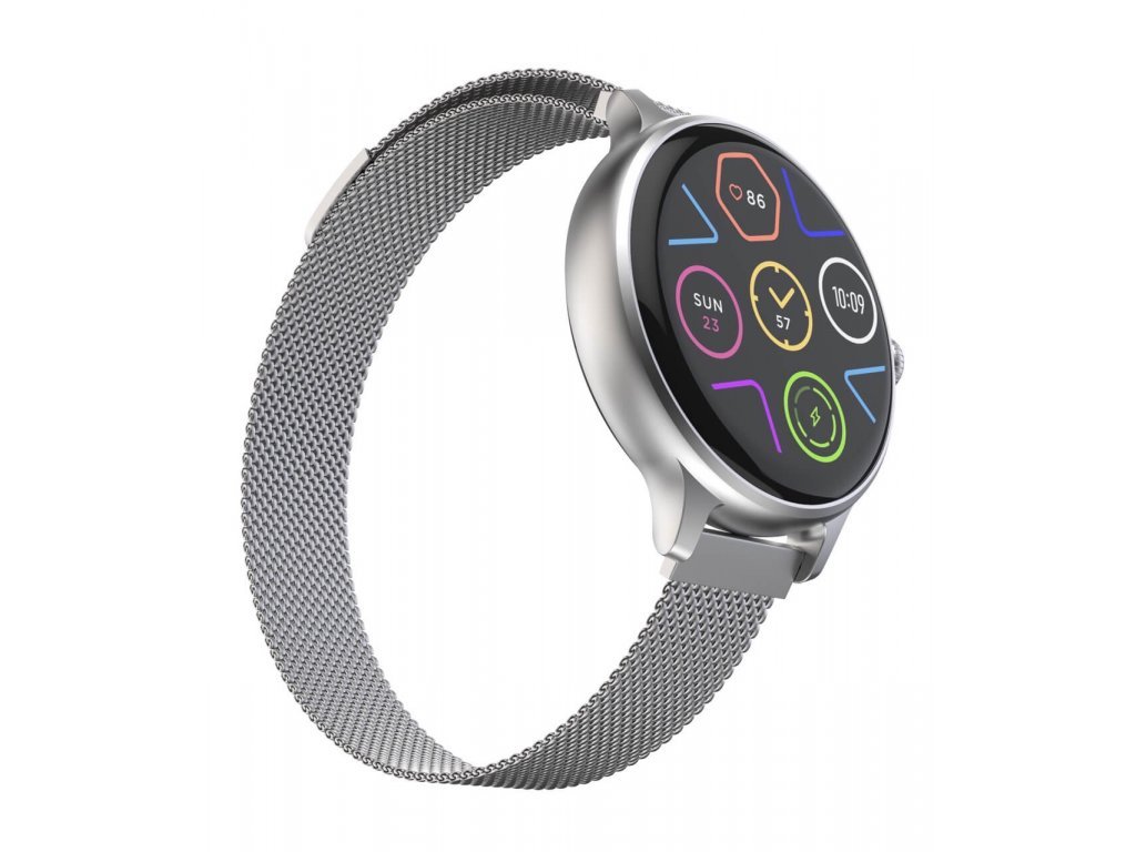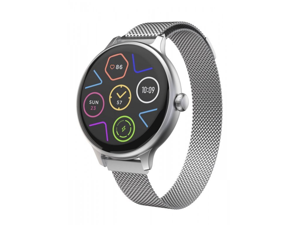 Všechna data vaší aktivity Moderní fitness smart hodinky Carneo HERO mini HR+ v elegantním stříbrném provedení disponují kulatým Super HD AMOLED barevným displejem. Umožňují měření srdečního tepu, stresu, BMI, ušlé vzdálenosti, monitorování spálených…