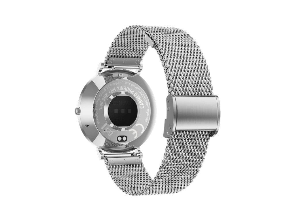Druhá generace luxusních fitness hodinek CARNEO Phoenix HR+ z nerezové oceli ve stříbrném provedení s milánským kovovým řemínkem s barevným dotykovým displejem AMOLED HD monitorují vaši denní aktivitu, úroveň stresu, ale lze je také spárovat s mobilním telefonem a upozornit vás na příchozí hovor nebo SMS. Hodinky umožňují telefonovat, aniž byste museli telefon vyndat z tašky, díky vestavěnému mikrofonu a reproduktoru až do vzdálenosti 10 m od telefonu. Jejich extrémně tenké tělo z nerezové oceli s jednoduchými křivkami je tak návykové, že je po prvním nošení nebudete chtít sundat z ruky. Výška bočního okraje pouhé 4 mm a hmotnost pouhých 35 g zaručují dokonalou diskrétnost na ruce. Model Phoenix je vzhledem ke své velikosti a hmotnosti určen pro ty, kteří nejsou nadšenci do chytrých hodinek.