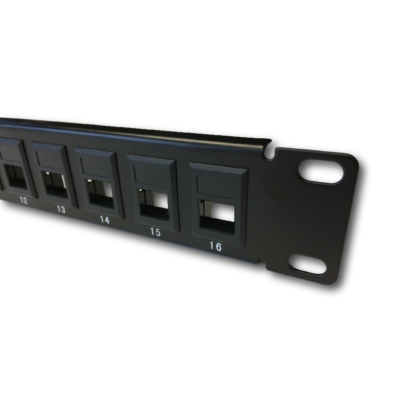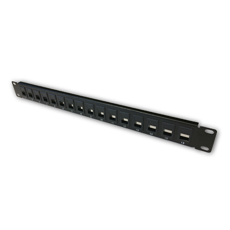 Patch panel 16-port neosazený (neobsahuje keystony, obsahuje rámečky pro keystony) - 19" Neosazený patch panel určený pro montáž do 19" datových rozvaděčů. - 16 x 1 pozice pro umístění keystonu (rámečky jsou již součástí) - výška 1U - barva černá