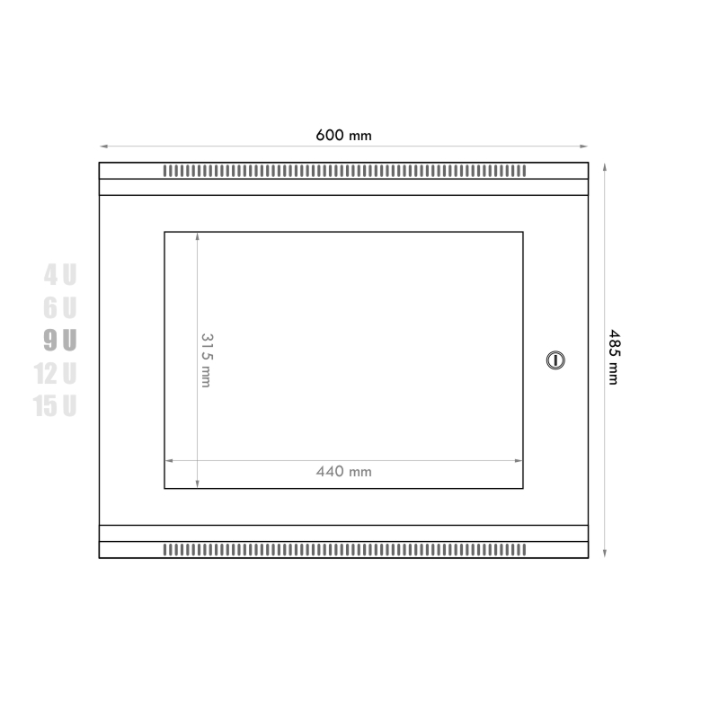 Upozornění: Pokud zboží převezmete od přepravce bez výhrady, není možná jakákoliv pozdější reklamace z důvodu fyzického poškození zboží. 19" nástěnný rozvaděč DATACOM - výška 9U (485 mm) - hloubka 440mm - barva černá - odnímatelné bočnice na obou stranách - ve stropě a dně kabelový průchod pro kabeláž - rozměry průchodů 50 x 260 mm - plechové dveře se skleněnou výplní - snadná výměna levé/pravé otevírání Rozvaděč obsahuje: - přední i zadní vertikální lišty - 1x stropní větrák 230V - 1 pár nosných ližin - dveřní zámek + 2 klíče - sáček montážních sad M6 (klecová matice M6, podložka M6, šroub M6) Vnější rozměry: - 485 mm (v) - 600 mm (š) - 440 mm (h) Logistické parametry: - rozměry: 610 x 465 x 500 mm - n.w.: 18 kg - g.w.: 20 kg