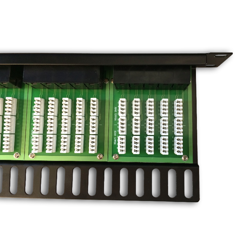 *19" nestíněný ISDN patch panel určený pro montáž do 19" datového rozvaděče.