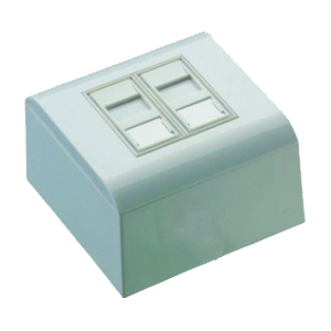 UTP 2x RJ45 dvojzásuvka Cat.6 pod i nad omítku balení komplet s keystone, jak zobrazeno na obrázku pod i nad omítku (je možno použít krabici či nikoli) - zásuvka je určená pro montáž "nad i pod omítku" - 2 x RJ45 schovaný za protiprachovou krytkou - nestíněné porty - CAT.6 - barva bílá