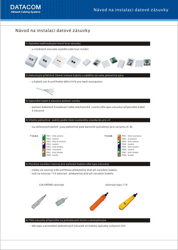 Parametry - DATACOM UTP dvojzásuvka pod omítku 45 st.- Cat5e