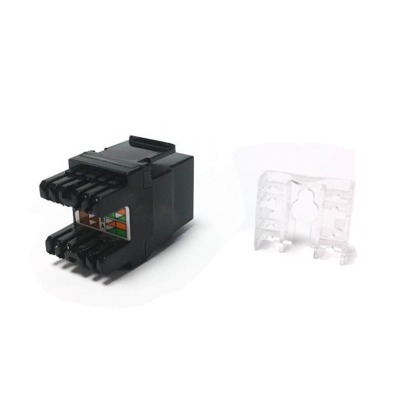 UTP Keystone Cat.5e černý (DUAL-slim zadní zářez) - zadní zářez s krytkou - nestíněný keystone Cat.5e - barva černá - zářezové pole typu DUAL (LSA i 110)