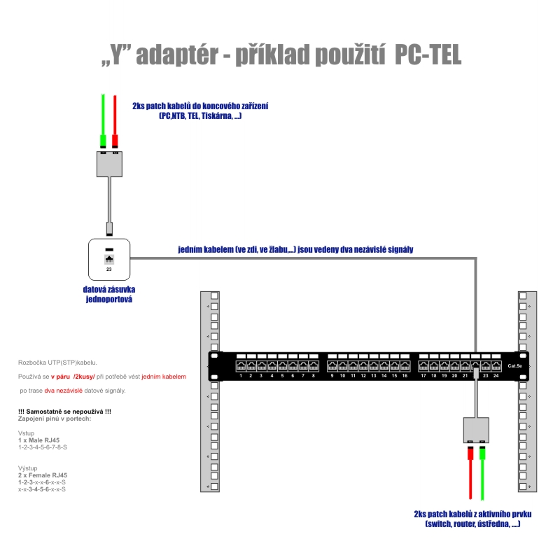 Parametry - DATACOM "Y" adaptér STP CAT5E PC / PC+TEL