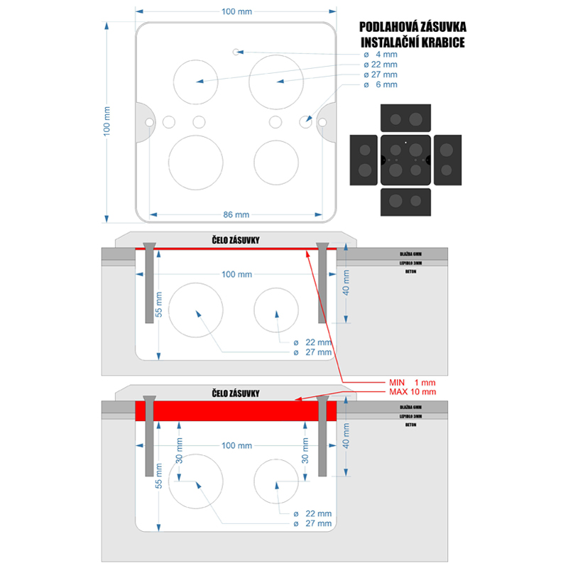 Parametry - DATACOM Zásuvka PODLAHOVÁ (1xRJ45 Cat5e+230V)
