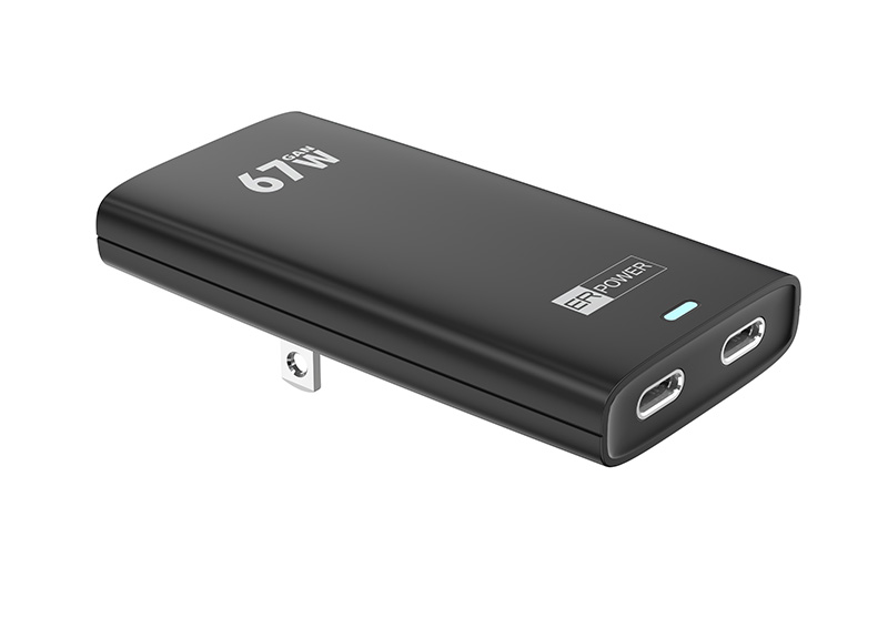 Adaptér ER POWER s výkonem 67W je poháněn technologií GaN. GaN je zkratka pro nitrid galitý, tato sloučenina slouží jako alternativa za křemíkové polovodiče. Hlavní výhody GaN technologie jsou, že polovodiče vytvořené z nitridu galitého vydrží mnohem vyšší frekvence než běžně používané křemíkové polovodiče, dále pak menší rozměry a několikanásobně vyšší efektivita bez přehřívání. Nabíječka disponuje dvěma porty USB-C, v balení navíc naleznete vyměnitelné UK a EU vidlice, které v případě potřeby umístíte na US vidlici, která je v nabíječce integrována. Díky tomu máte možnost nabíjet dvě zařízení a to téměř kdekoliv na světě.
