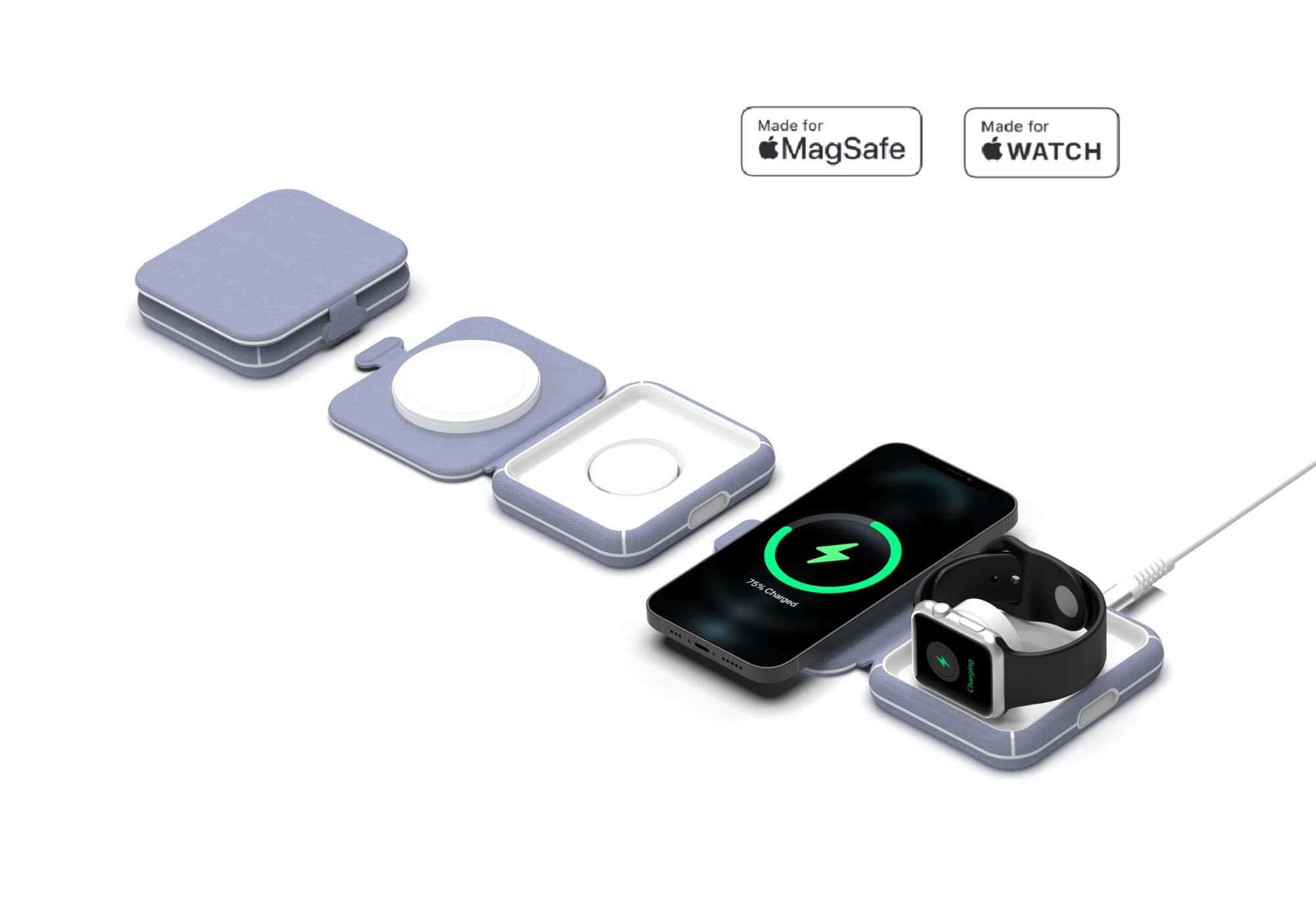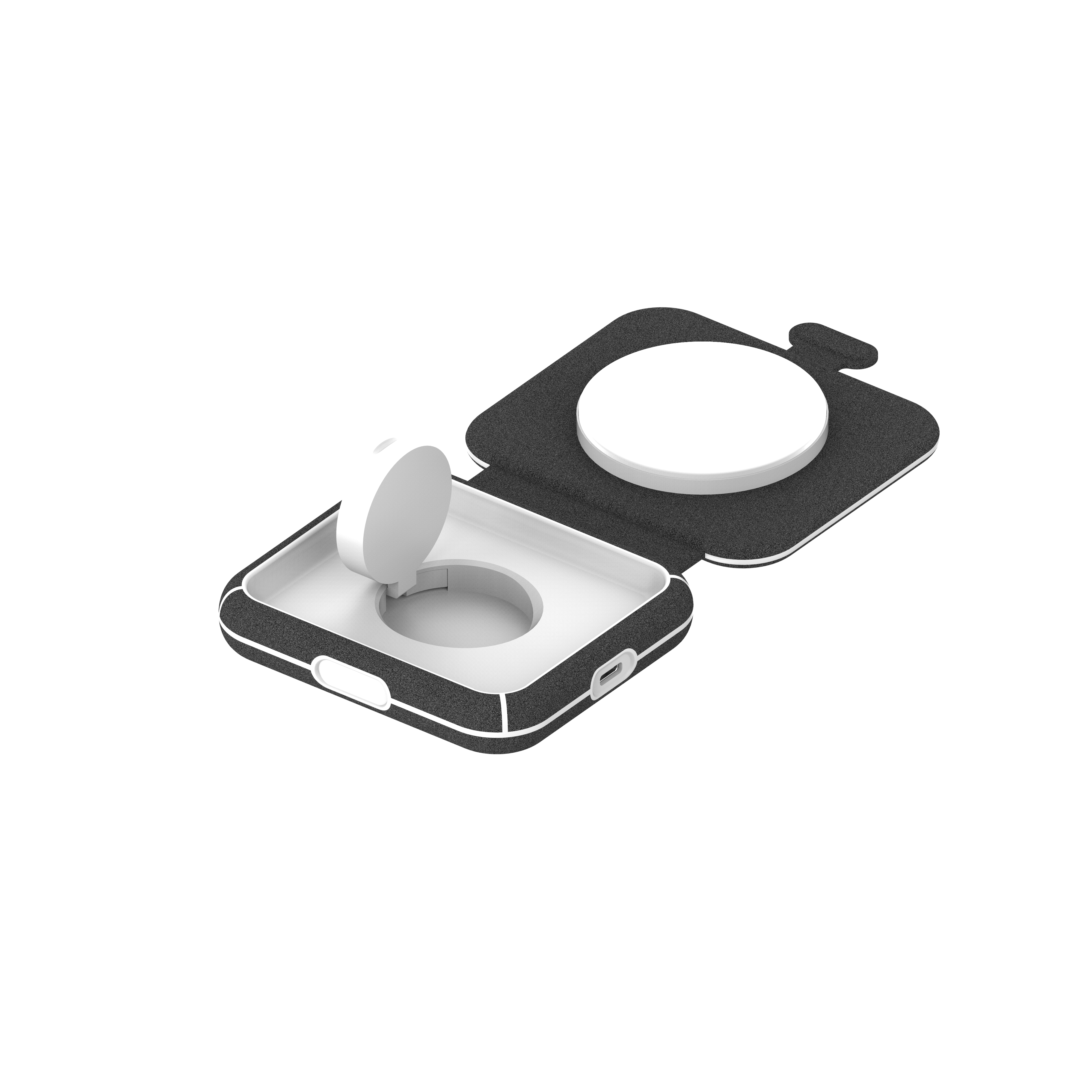 Skládací nabíječka s nabíjecí plochou pro smartphone a MFW rychlo-nabíjecím modulem pro Apple Watch. Součástí balení je USB-C/USB-C kabel v délce 2 metry. Kompatibilní s MagSafe a Qi a současně také rychlo-nabíjecí MFW certifikovaný modul pro Apple Watch. Díky tomu můžete pohodlně dobíjet dvě zařízení současně. Barva: černá