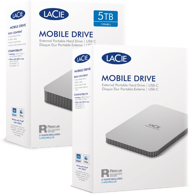 Vyznačuje se minimalistickým designem - každé pouzdro a obal Mobile Drive jsou vyrobeny z recyklovaných materiálů. Funguje s MS Windows a Mac, stačí jen připojit. Díky zálohování jedním kliknutím nebo automatickému zálohování je ukládání souborů mimořádně plynulé, navíc kapacita až 5 TB poskytuje dostatek místa pro fotografie, seznamy skladeb, dokumenty a další soubory.
