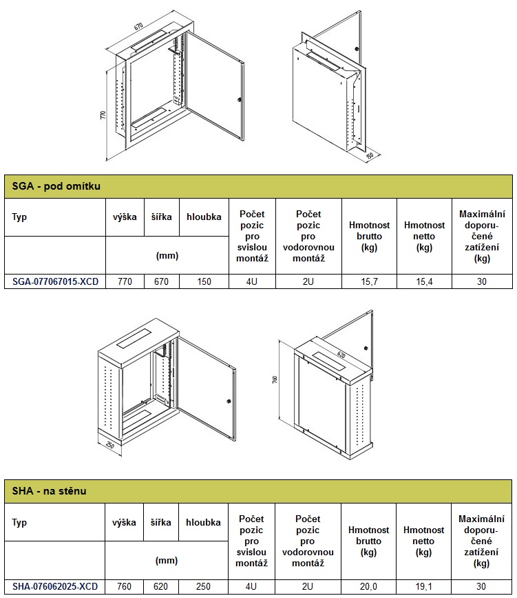 SGA-077067015-XCD PŘEHLED Hybridní rozvaděčové skříně pro realizaci domovních datových a silových rozvodů. IP20, nosnost 30 kg. TECHNICKÁ SPECIFIKACE CHLAZENÍ Vnitřní prostor rozvaděče je chlazen provětráváním…