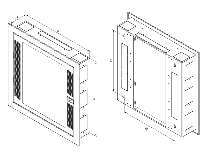 • Po obvodu rozvaděče jsou připraveny záslepky k vylomení.