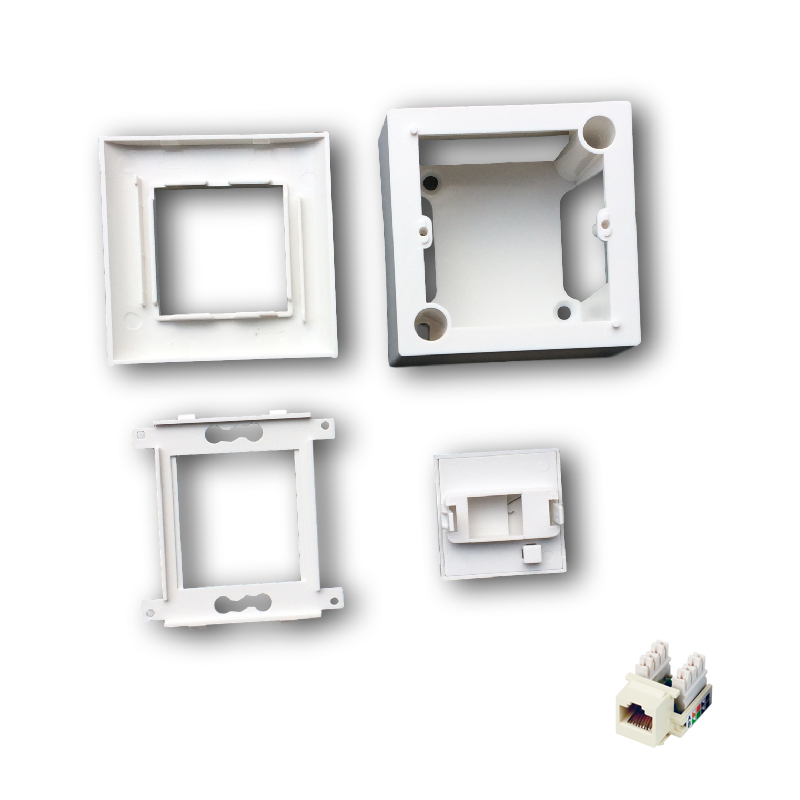 - 1 x /8p8c/ RJ45 UTP keystone je součástí balení, na obrázku schovaný za protiprachovou krytkou