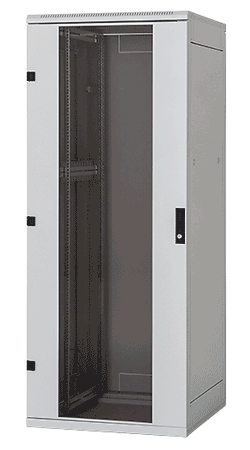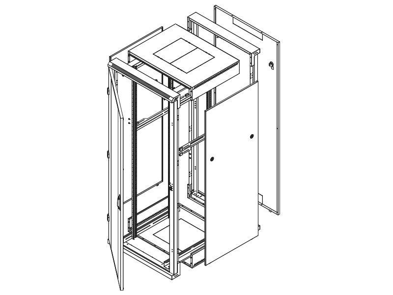 Popis, účel použití • 19“ stojanový rozvaděč s krytím IP20 • Součástí rozvaděče jsou 4 posuvné vertikální lišty k instalaci zařízení (6 lišt pro rozvaděče hlubší než 800?mm). • Konstrukce rozvaděče: – Ocelový šroubovaný skelet s odnímatelnými krycími panely. – Dveře jednokřídlé nebo dvoukřídlé ve variantách celoplechové, perforované (80 % a 86 % prostupnost) nebo prosklené s bezpečnostním tvrzeným sklem 4mm. Mohou být na přední i zadní straně rozvaděče. • Dovolené zatížení jednotlivých dveří je max. 20 kg. • Minimální tloušťka povrchové úpravy je 65 µm. • Tyto rozvaděče jsou určeny k instalaci datových a telekomunikačních zařízení a jejich distribučních systémů. • Rám rozvaděče a všechny oddělitelné části (boční a zadní kryty, dveře…) jsou pospojeny pomocí propojovacích kabelů, které musí být důkladně připevněny a zasunuty do konektorů po celou dobu užívání rozvaděče. • Na spodní části rozvaděče je umístěn šroub M8 pro připojení pospojení. • Kabelové vstupy kryté vylamovacími záslepkami jsou umístěny v horní a ve spodní části rozvaděče.