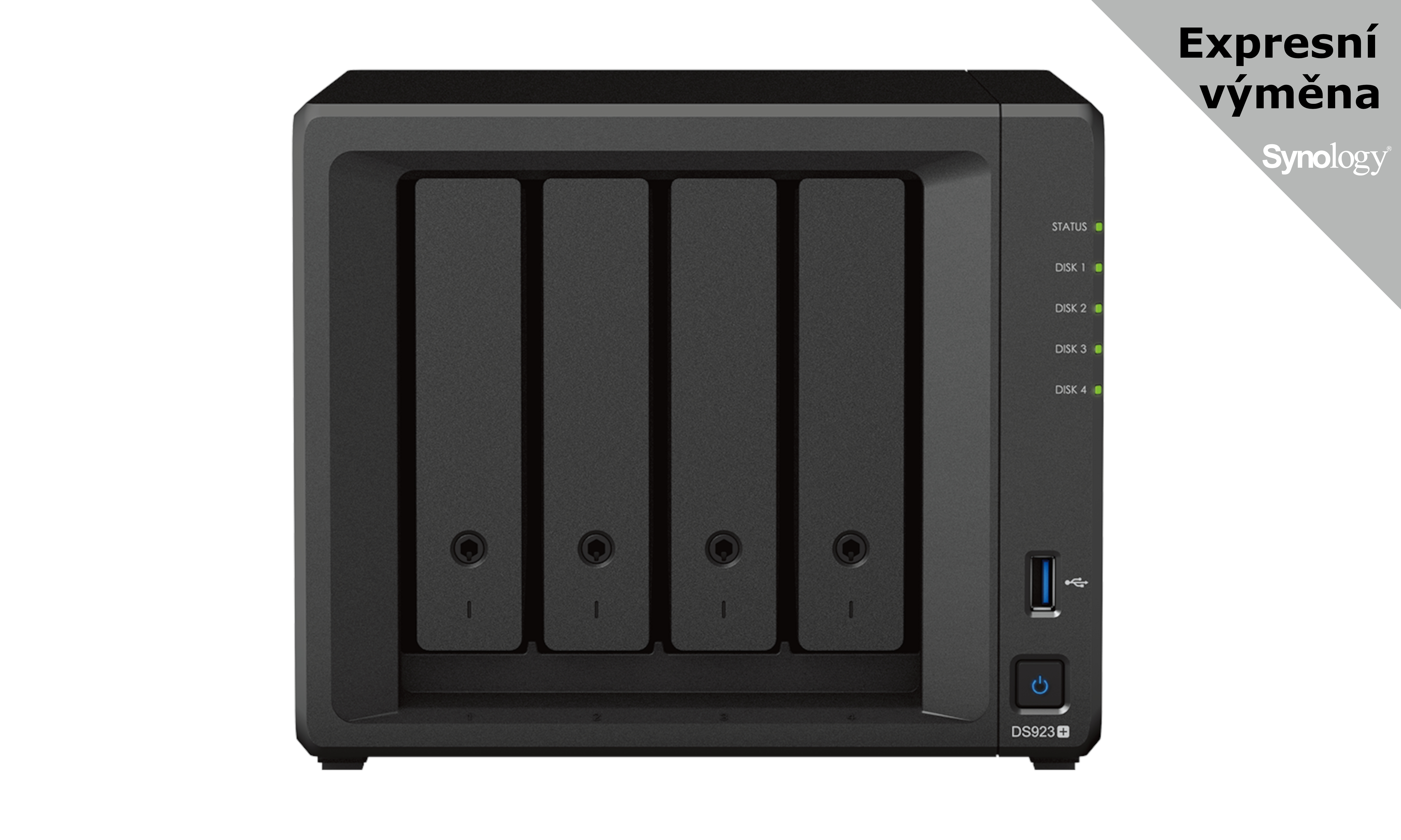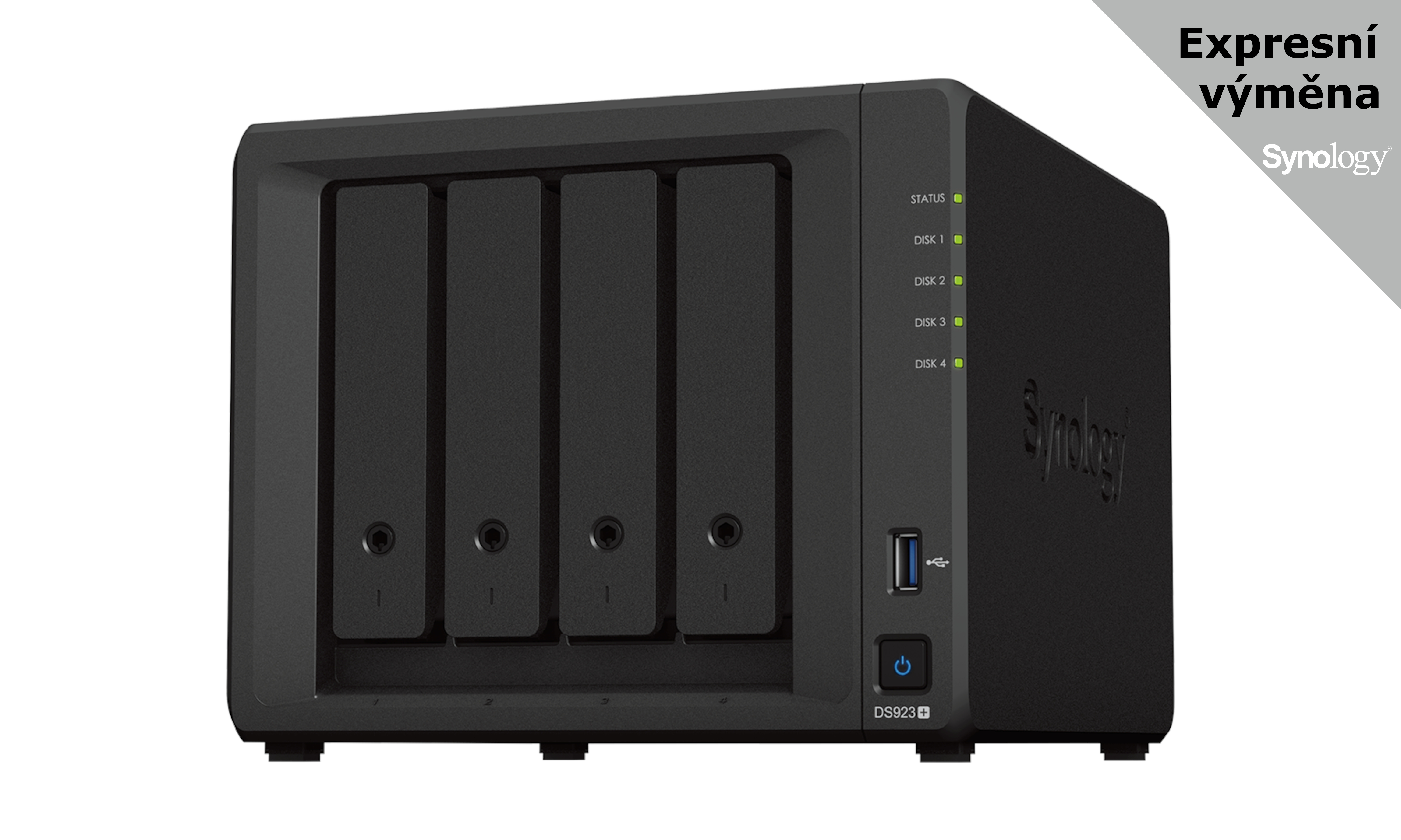 Flexibilní platforma pro ukládání dat pro malé firmy a domácí kanceláře Zařízení Synology DS923+ je výkonné čtyřšachtové zařízení NAS, které lze podle měnících se potřeb snadno upravovat nebo rozšiřovat. Nabízí také volitelnou podporu až devíti disků a rychlejšího připojení k síti a disky NVMe SSD pro ukládání do mezipaměti nebo pro vytváření dalších fondů úložiště. Využívá systém Synology DiskStation Manager (DSM) a nabízí flexibilní univerzální řešení pro sdílení dat, synchronizaci, zálohování a sledování.Klíčové vlastnosti * Spolehlivý výkon - Propustnost sekvenčního čtení/zápisu až 625/559MB/s umožňuje rychlé a efektivní provádění operací se soubory. * Univerzální síťové úložiště - Využijte vestavěná řešení správy souborů a fotografií, ochrany dat, virtualizace a sledování. * Rychlé a stabilní připojení k síti - Dva porty 1GbE umožňují rychlou integraci do stávajících prostředí (s volitelnou možností připojení 10GbE pro zpracování více specializovaných aplikací náročných na šířku pásma). * Snadné rozšíření kapacity - Přidáním 5 dalších přihrádek na disky prostřednictvím jedné rozšiřovací jednotky DX517 (prodává se samostatně) dosáhnete maximálního počtu 9 disků úložiště. * Prodloužená podpora k produktům - Na zařízení se vztahuje tříletá omezená záruka na hardware společnosti Synology, kterou lze prodloužit až na 5 let.