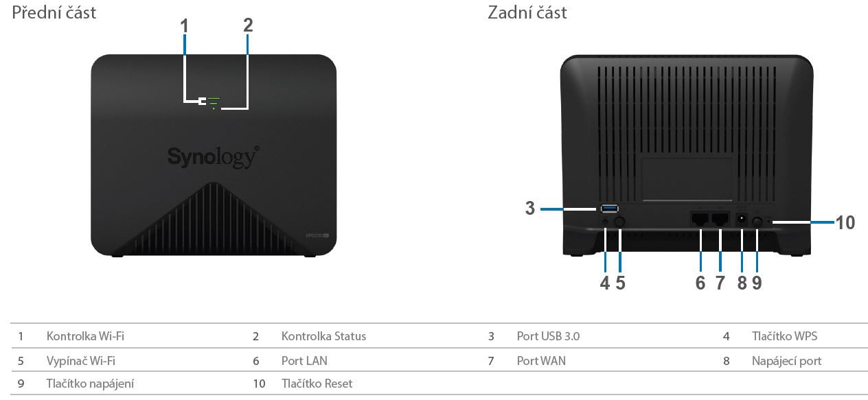 *WPS, Napájení, Reset, Wi-Fi zapnuto/vypnuto